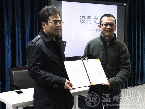 讲座伊始,皇冠博彩 李运河院长代表校方,向林若熹教授颁发了“温州大学客座教授”聘书,并诚挚表达愿望,希望林教授能以己之力,带动地方高校的美术创作与科研能力,加强合作交流,保持长效的学术共享平台。