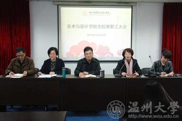 2016年12月26日下午,皇冠博彩 在2B4001多功能厅召开期末全体教职工大会。院长李运河,党总支书记张丽萍,副院长谢子静、王薇,党总支副书记杨振海出席会议,会议由张丽萍主持。会上,以无记名投票的方式对学院领导班子进行了民主测评,校党委组织部的老师组织并监督了整个投票过程。李运河院长对本学期学院主要工作做了回顾总结。在教学工作方面,皇冠博彩 顺利完成了迎接“本科教学审核性评估回查”的工作,评估组在参观了皇冠博彩 与风笛服饰合作建立的服装设计专业省级教学实践基地和学生创新创业团队后给与高度评价;在科研工作方面,教师成功申报多项国家级省级教科研项目,在一级刊物发表论文多篇,美术学专业老师分别在国内外举办了个人画展,多人参展国家级省部级美术作品展并获奖,科研成果无论从数量上还是质量上均超越了去年同期;在学科竞赛上,皇冠博彩 成功承办第八届浙江省高校工业设计竞赛,受到全省几十个参赛院校师生的广泛好评,树立了很好的口碑;在服务地方工作方面,“温州时尚学院”参加温州时尚展,得到了张耕市长、李校堃校长、林娟娟书记等领导的充分肯定;与瓯海区联合设立的温州时尚产业创新研究中心,正式挂牌入驻瓯海时尚智造小镇;与红蜻蜓、风笛、四目、方氏等校企合作项目也逐一推进。他指出,在肯定可喜成绩的同时也要看到学院在某些方面仍存在不足,比如科研项目申报的数量层次、加快国际化的步伐等方面皇冠博彩 还需继续努力。谢子静、王薇、杨振海分别就各自分管工作做了学期总结汇报,并对期末以及寒假工作作了具体部署。学院教学督导组组长黄良老师就本学期的督导工作做了汇报。他对具有严谨治学态度和高质量的教学效果的教师给与了肯定和赞扬,也提出了老师们课堂教学方式方法及对听评课不够积极等问题。 张丽萍做总结发言。她充分肯定了一年来学院在各个方面取得的成绩,对做出特别贡献的老师提出了表扬。她指出,从学院党总支年度考核工作的各项数据可以看出,党员成为各项工作的核心骨干和主力军,在教学、科研、管理一线充分发挥了党员应有模范带头作用。她还强调在学期末要继续严守良好教风,期末考试要严肃考风考纪,做好育人工作中每个环节的尽职尽责。她希望全体教师齐心协力、众志成城,为学院抓住机遇快速发展做出每个老师应有的贡献!