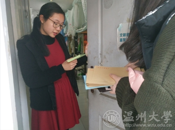 2016年12月28日,皇冠博彩-博彩导航 “艺家人”青年志愿者协会在超豪学区开展了弘扬“雷锋”精神的“爱心邮递”活动。 在数字化信息化的时代,人们似乎已经忘记了在通讯技术落后的年代里如何将情感用文字嵌入信中,并让它飘向远方,表达内心情感。此次活动号召通过以信件的方式写下对他人的祝福或者感谢,由志愿者们送到收件人的手中,正是对从前慢节奏的情感交流很好的体验。活动受到了广大同学们的一致好评,同学们纷纷将想说的话写在信纸上,在收齐信件后,小邮差们穿梭在各栋寝室楼内,他们轻叩房门微笑地送上手里的信件,并与收信人合影留念。 图/文:王伟