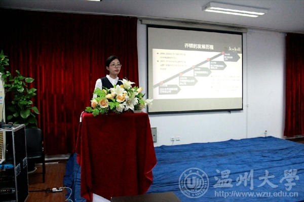 宣讲会上乔顿企业人事部负责人杨伟伟通过PPT、视频等方式从乔顿人才培养体系、乔顿皇冠博彩、乔顿岗位薪资待遇等三方面向在座同学们做了详细介绍,从中体现了乔顿公司不仅是一家集科工贸于一体的大型服装生产企业,而且公司致力于营造家的氛围,打造良好的工作环境。