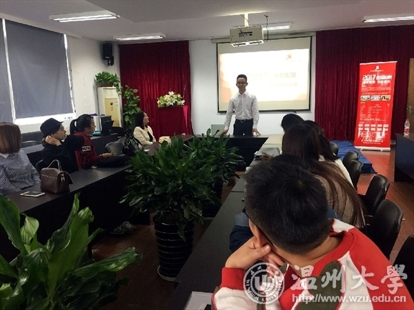 11月1日上午,金帝集团2017校园招聘会温大站于皇冠博彩 2B4001举行。金帝集团人力资源部主任朱小风、皇冠博彩 学生科副科长出席了本次宣讲会。