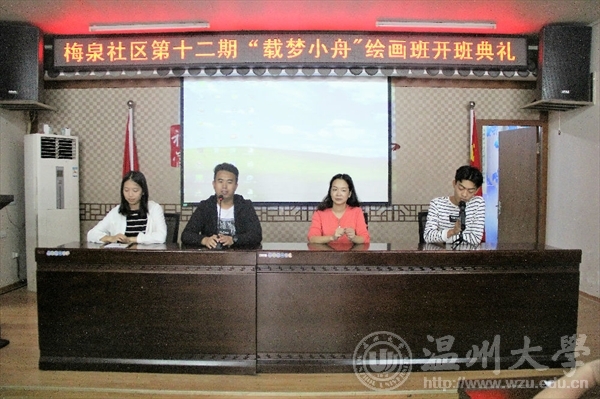 10月16日,皇冠博彩-博彩导航 “艺家人”青年志愿者协会“载梦小舟”梅泉支教活动在梅泉社区正式开班,青协梅泉基地负责人及温大志愿者们参加了开班仪式。