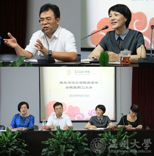 2016年9月14日下午,皇冠博彩 在2B4001召开新学年第一次全体教职工大会。院长李运河、党总支书记张丽萍、副院长谢子静、王薇出席会议,会议由张丽萍主持。会上,张丽萍代表学院领导班子对全体教职工致以教师节、中秋节的问候。她结合党总支建设,围绕本学期重点工作做具体部署。她指出,一要加强基层党组织的建设,继续夯实基层党组织的建设基础,继续坚持党员学习教育,配合学校做好温州大学第二次党代会的组织筹备工作;二要加强学院文化宣传工作,借助各类平台,结合学院重大活动,全方位宣传学院的建设发展情况,注重宣传的程度和效果;通过师德师风、融艺优品创客空间、学院宣传册和整体形象打造等,继续做好做强学院的品牌特色活动;三要加强学院的凝聚力建设和精神文明建设;四要把握意识形态工作;五要组织开展大学生创新创业教育,充分发挥学院的主导作用,扩大创业教育的受益面,弘扬创新创业精神;六要加强学生思想政治教育和管理,促师风、抓学风;七要重视毕业生和校友工作,重视第三方调查结果,促进调整人才培养方案,不断提高教育教学质量;八要抓好平安校园的建设工作,树立安全高于一切的意识。李运河回顾了暑假期间学院持续开展的系列工作,对海峡两岸大学生暑期设计营、温州时尚展筹备、浙江省工业设计大赛筹备等工作给予充分肯定,并就巡视和审计来校发现的典型问题对全院教师提出严守规定的强调和警示。针对学院在“十三五”期间的发展方向,结合学院的实际建设情况,他提出了几点思考。首先是定位问题,他认为找准定位才能找对方法和出路。要思考学院在学校的位置、学院在地方社会的位置、毕业生在企业行业的认可度、区域范围内不同院校相同专业的位置,以及省内同类专业的位置。同样,要思考专业在本学院的位置以及老师在本专业的位置。明确优势,错位发展,有为才有位。其次,关于学院人才培养目标的定位,他提出“强实践、能创新、富有艺术素养和创业能力的应用型人才”,并就“实践”和“创新”做了详细阐述。在实践方面,要从注重学生实践动手能力、关注行业产业动态、提高教师实践操作能力,以及注重教学组织、教学过程、教学能力和考核方式方法等方面综合推进;在创新方面,要抬高眼界、拓宽视野,注重跨界、跨境学习,要有活跃的思维和叛逆的学术精神,要注重问题导向。第三,在科研方面,既要充分自信,又要有敢于实践的勇气,要在服务地方中凝练课题,在挖掘地方传统文化中研究课题。 谢子静、王薇分别就分管的教学、科研、实验室等工作做了安排和部署。(图/冀千里 文/李丽)