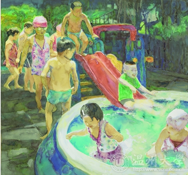“……作为人物题材的水彩画,画家努力改变水彩在塑造形象时易于轻薄的短板,通过并非一次性完成的设色方法让画面显得丰富和厚重。…..作品注重人物形象的塑造、注重男女老少在不经意之间展露的情态、注重阳光投射在他们身上形成的各种光色的变幻,她努力将这些瞬间形象定格于画面,以此增强水彩语言的表现能力,进而使这些画作进入艺术思考与语言探索的层面。”