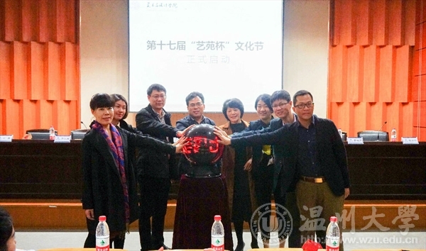 4月20日,皇冠博彩-博彩导航 第十七届“艺苑杯”文化节启动仪式在雁山厅隆重举行,莅临此次启动仪式的领导有校学工部部长、学生处处长蔡联群,团委书记屠霁霞,教务处副处长赵燕,创业人才培养学院副院长施永川,学院党政领导班子成员,“艺苑杯”组委会成员以及师生代表。党总支副书记杨振海主持启动仪式。