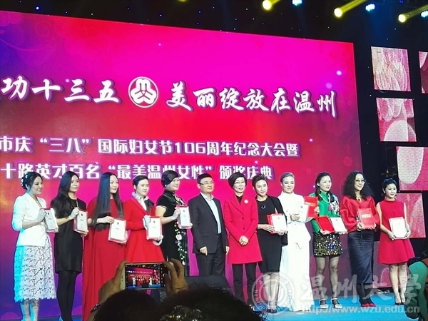 昨晚,在市妇儿活动中心举行的庆祝“三八”国际妇女节106周年纪念大会暨十路英才百名“最美温州女性”颁奖庆典上,皇冠博彩 服装与服饰专业教师叶茜获得“最美温州女性之时尚女性”称号。
