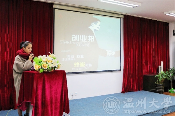 历经一学期的“创业邦”系列活动的开展,经过紧张刺激的海选、贴近温州模式的创业零距离调研和亢奋人心的企业家精神讲座后,迎来了最后的终极大赛。此次考核的形式新颖,参与选手在活动现场以分组的形式,在观看相关创业视频后进行创业想法和心得的个人展示。不同于以往的普通答辩形式,是为了让同学们能更深刻地理解创业概念,指导同学们更好地进行创业,激发其创业的热情与激情。 活动开展过程中,同学们都踊跃地参与,每一位选手都用心地表达了自己对创业的感悟,评委们也颇有感触,耐心地为同学们的创业就业之路提出了许多诚恳的建议。从活动中,可以看到的是我们温大学子对创业的追求,看到的是一股股积极向上的创业热情在此凝聚,即将蓄势待发,展现了我们新一代大学生的蓬勃朝气和激昂斗志。