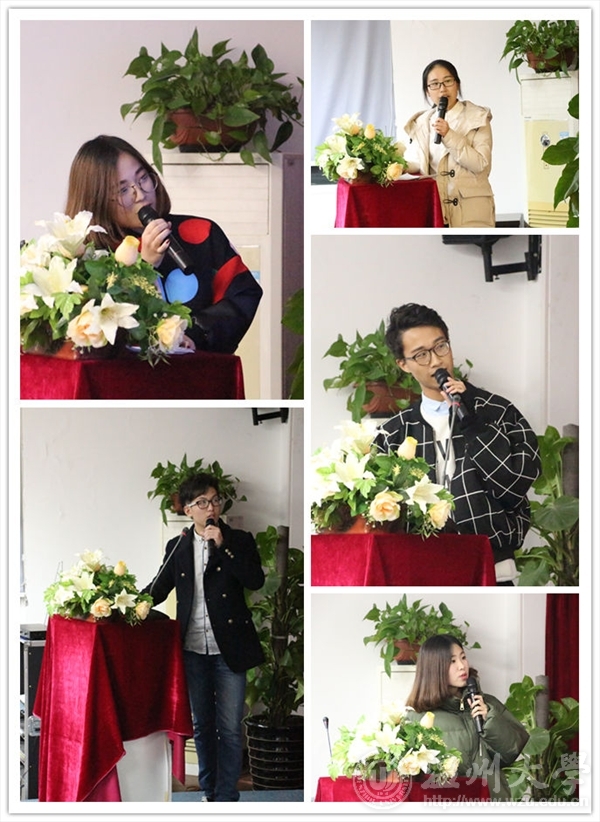 12月30日晚,皇冠博彩 团委学生会2015-2016学年第一学期第四次全体成员大会在美院楼2B4001召开,参与此次全委会的人员有团委书记叶筱卉老师,团委指导老师商义铮老师,团委副书记孙彦鑫,学生会主席张昇,学生会副主席刘秀娜,学生会副主席周志豪,青协会长杨猛以及团委学生会全体成员。 会议第一项议程是“每月之星”的评选。转眼间,3个月前在这里面试并荣幸的成为了团学的一员,工作时还会手忙脚乱的青涩的干事们,现在已经可以自信地站在团学全体人员面前做工作总结了。干事们以十足的诚意准备的精彩演讲博得阵阵掌声。正如有个干事所说的那样:“你的人生永远不会辜负你,那些转错的弯,走错的路,留下的泪,滴下的汗水,全都会让你成为独一无二的自己。”相信经过团学的工作磨练后,干事们会更加优秀,成为更好地自己。 第二项议程是每个部长汇报本月工作,各部长诚恳陈述了工作的优缺点,也对工作做出了简要说明。 第三项议程是老师讲话。团委书记叶筱卉老师和团委指导老师商义铮对于“每月之星”的演讲表示非常欣喜。团委书记叶筱卉老师说,“每月之星”不仅展示了个人形象,也展示了部门风采。同时老师也建议干事们多谈自己的工作成长,和具体的点滴会更好展示个人的学习收获。同时,叶老师也分享了她的体会心得。叶老师说,比起成绩,成长更重要。我们现在获得的成绩是对我们付出的认可,希望同学们工作中得到锻炼,有所成长。在成长中,我们不能随波逐流,要做好自己的选择,并在现在和将来做好自己。看看自己今天做了什么,有什么可以引领自己,使成长在足够长的时间里得到积淀,再回过头给自己做一个成长鉴定。 最后,学生会主席张昇的讲话让同学们体会到身为团学一员每个人工作的重要,和必须的责任感。团委学生会在和谐的气氛中结束了,相信优秀的干事们可以在工作中得到更多磨砺,让美院团学更加精彩。图:设计宣传部文:设计宣传部