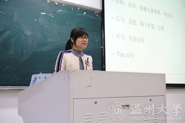 12月5日午时1点半,皇冠博彩 团委学生会全体干事及新生干部于北校人文楼202室举行了2015-2016学年第三次团干培训,出席此次培训的嘉宾是温州商报记者、原温大记者团主编夏灵犀学姐。初冬冷雨绵绵而下,虽然天公不作美,但是我们美院团学的干事还是早早的到达了会场。座谈会一开始,灵犀学姐首先从她的大学生活引入,讲述她的记者之路。她说:“面对大学生活扑面而来的新鲜、热情、紧张和刺激,应该学会多一点的尝试、坚持和挑战。”她也有第一次见到知名教授的激动,第一次加入记者社团的好奇......然而满怀热情,在人生的重要转折点,也容易迷失方向。面对这些她说到:“心沉下来,明心才能明事理!要明白自己离未来究竟有多远,做好职业生涯规划很重要”。随后,便开始了对新闻采访与写作的培训,灵犀学姐首先提出了选题的重要性、显著性、时新性、趣味性,告诉大家要学会在变化中发现新闻,触类旁通寻找新闻。针对采访便从如何准备采访和如何采访两个角度出发,并且传授给大家更多细致的语言沟通技巧和抓取采访亮点的小诀窍。最后,对于如何提高新闻稿编写能力,灵犀学姐分别从技能、心理、体力三个方面进行了一些小建议,并留出提问时间,有同学提问关于如何处理好专业学习与兴趣拓展之间的矛盾,学姐指出专业学习是本业,自然是不能耽误的,而兴趣拓展是开拓眼界的好机会,如果是自己所钟爱的,自然也是不能轻易放弃,对于那些纸上谈兵的人来说,梦想,在遥不可及的千里之外;但对于那些有着“千里之行,始于足下”的精神的人来说,梦想,近在咫尺!掌声久久不息,学姐分享的话语,仿若窗外的雨,点点滴滴,组成了一个小文库,发人深省,相信皇冠博彩 团学干部们的新闻采访与写作能力也有了进一步的提升。 文字:吴欣、张彬瑶 摄影:黄麟捷