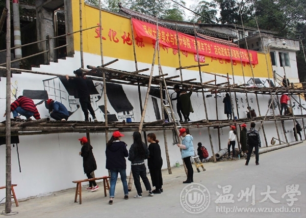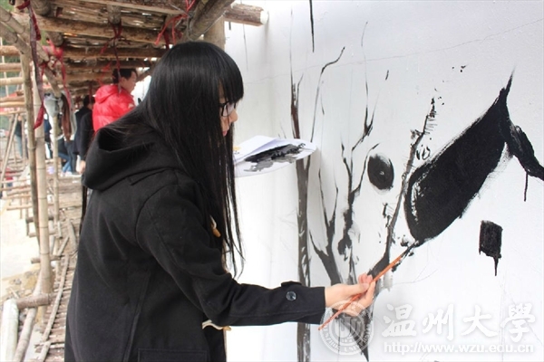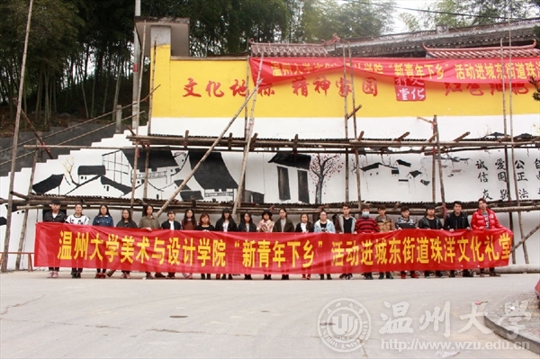 为了响应与落实市委“新青年下乡”主题精神。2015年12月12日,皇冠博彩-博彩导航 “艺家人”青年志愿者协会带领美术学院志愿者们来到温州市乐清城东街道珠垟村,进行了为期一天的墙绘活动。