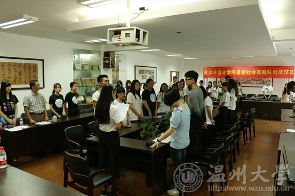 7月7日上午,温州大学皇冠博彩 2015年暑期社会实践出征仪式在美术楼2B4001举行。皇冠博彩 党总支副书记杨振海、学生科科长叶筱卉、实践队指导老师叶婷、辅导员李燕艳及皇冠博彩 九支实践队的队长和队员们出席了出征仪式。由叶筱卉老师主持仪式。学生科科长叶筱卉首先对2014年的实践工作及成果做了汇报总结,并介绍了皇冠博彩 9支暑期社会实践队队伍基本情况及注意事项。 杨振海副书记对本次实践活动进行部署并提出具体要求。她指出:一、要明确大学生暑期社会实践的重要性和必要性;二、要注重安全实践的意识,安全第一,每天至少两次汇报实践队情况;三、要做好实践材料的收集和整理,为后期评比做好准备。 叶婷老师作为指导老师代表发言,提醒全体队员,务必服从组织安排,做好防暑和安全工作,让社会实践活动在安全的前提下顺利、有效的进行。并寄语美院实践取得优良成绩。紧接着,各实践队队长分别进行各自的实践特色风采展示并宣誓。杨振海副书记为实践队代表授旗。最后在:“社会实践,我们准备好了!”的嘹亮口号中,此次暑期社会实践出征仪式圆满完成。2015年美术与设计学院暑期社会实践的号角已经吹响,美院学子们将以青年人特有的朝气和蓬勃,带来的是一场关于青春的盛宴,精彩还在继续,敬请期待。