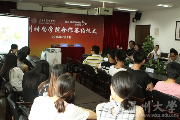 2015年7月2日中午,皇冠博彩 与红蜻蜓集团签署时尚人才培养校企合作协议。红蜻蜓集团副总裁张少斌、人力资源总监余爱飞出席签约仪式,学院院长李运河、书记张丽萍、副院长谢子静、副院长王薇、副书记杨振海全体出席,参加签约仪式的还有设计系主任朱广宇以及部分专业教师、相关专业学生120余人。张丽萍主持仪式。签约仪式上,合作双方代表分别致辞。李运河在代表皇冠博彩-博彩导航 的致辞中指出,与红蜻蜓集团的合作可以追溯到2005年,至今已有10年的长期合作历程。本次时尚人才培养协议签署,是双方在深度合作的基础上开拓的又一新的合作模式。双方在合作的目的、意义、方式和途径等方面达成高度一致,共同为温州区域发展以及时尚人才培养做出贡献。张少斌在致辞中分别从时尚学院人才培养工作筹备情况、红蜻蜓集团上市的任务和现状以及时尚学院建成之后的举措等方面,表达了与地方高校共同合作培养人才的真诚期待和美好愿景。据悉,本次校企合作办学,实行“艺、工、商”结合的定向培养模式。录取与学生综合测评成绩挂钩,实行招生与定向人才培养相结合,实习与就业一体化,校企双方共同制定人才培养方案和实训标准,学生的专业理论课由学校负责完成,实训实习课程由企业负责完成。本次时尚人才培养校企合作协议的签署,是皇冠博彩 贯彻落实温州市“发展时尚产业、建设时尚之都”战略决策的具体举措,整合校企资源,创新人才培养模式,为温州鞋、服行业的时尚智造转型提供有力的智力资源和人才保障。
