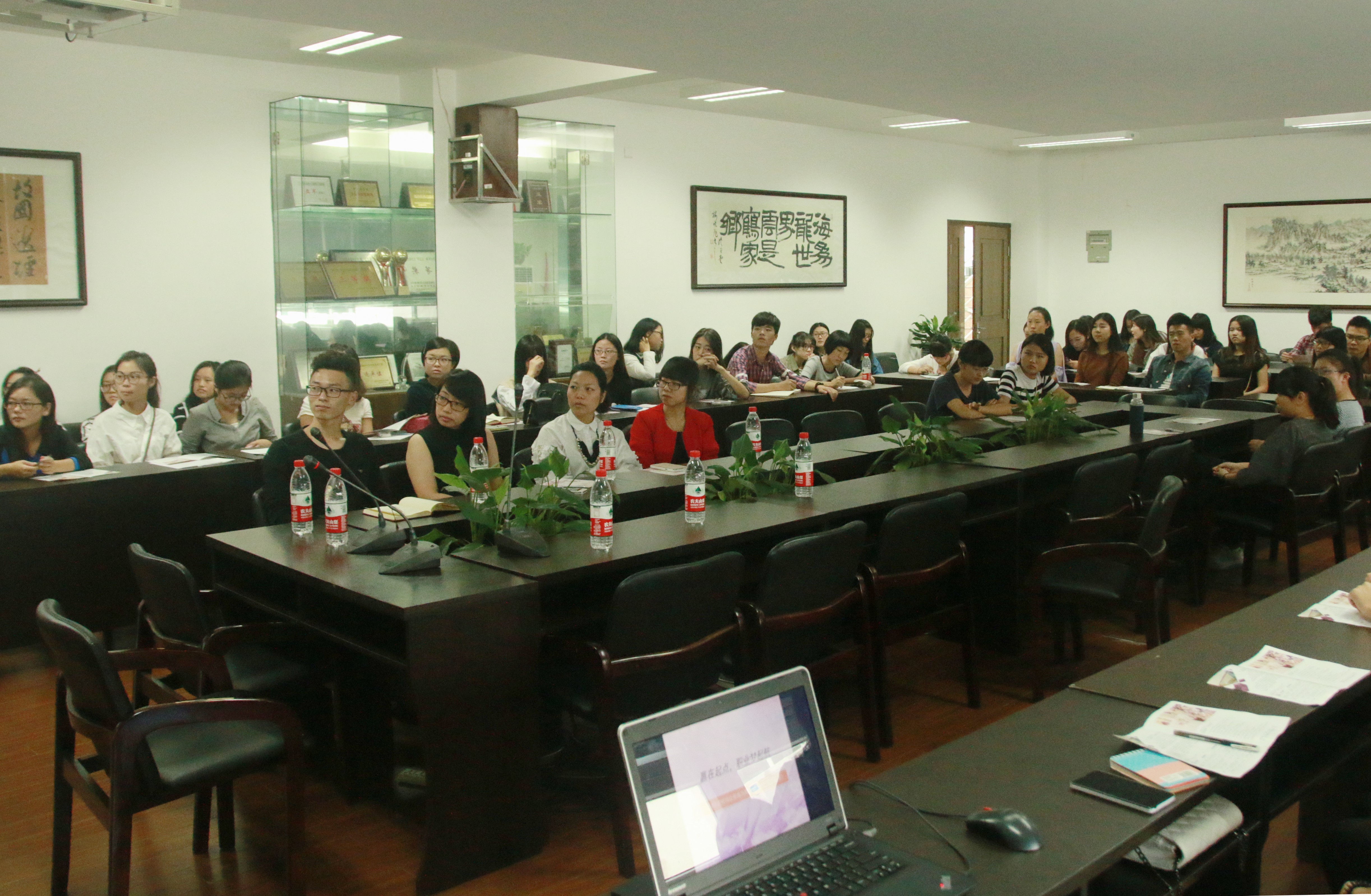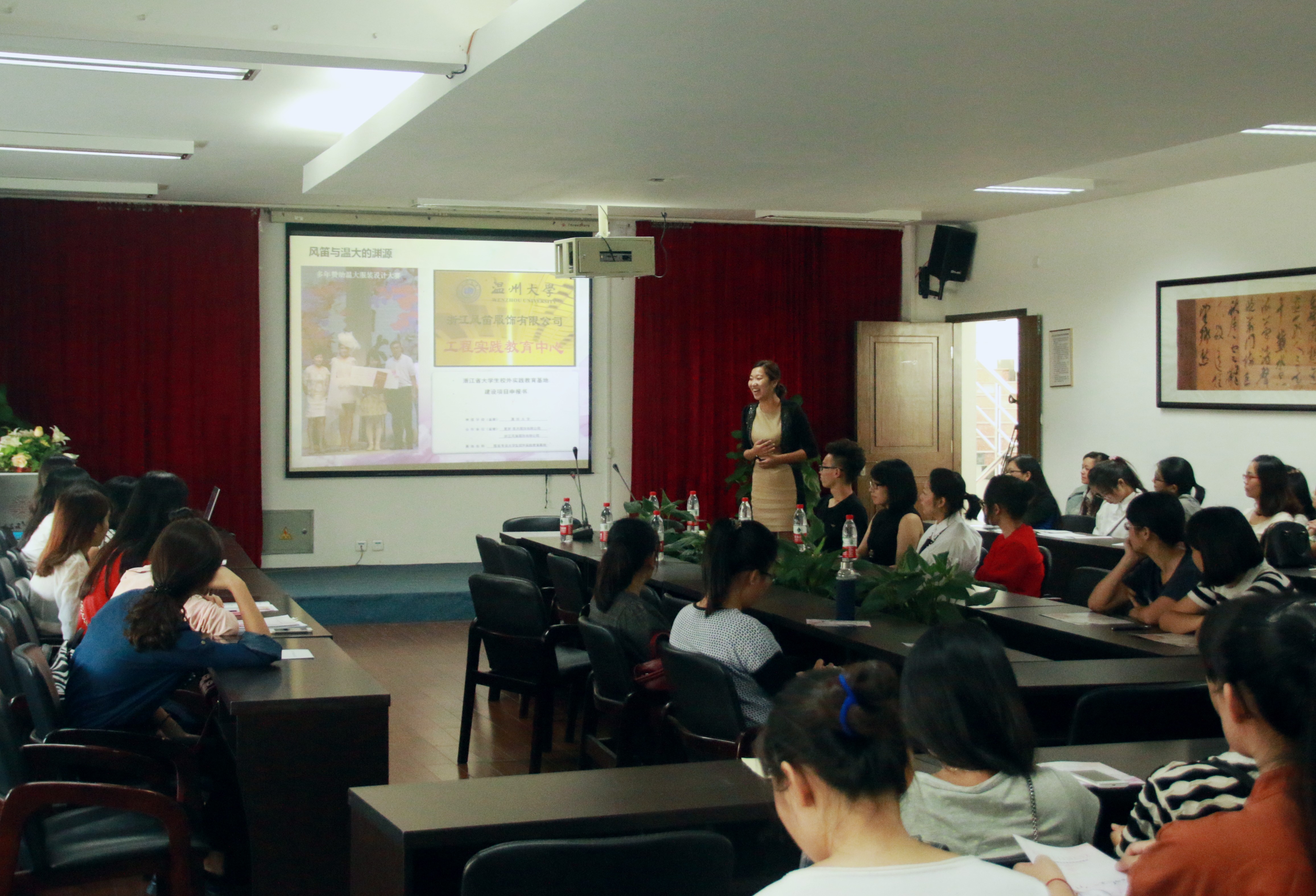 10月22日下午,2014风笛服饰全国高校巡回招聘会温大站于皇冠博彩 2B4001举行。风笛公司培训发展部经理陈宁、女装设计部针织组助理沈烨焘、企划部平面设计助理、人力资源主管林赛赛出席此次会议,院学生科副科长叶如芳及有意向的毕业生参与听讲。