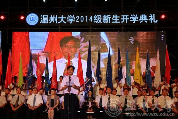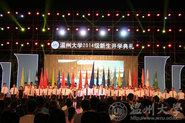 丹桂飘香沁人心,最是金秋好时节。9月28晚, 2014级新生开学典礼在南校区操场隆重举行,校领导陈福生、蔡袁强、林娟娟、牟德刚、薛伟、赵敏、吴金法、蔡曙光、黄少铭、陈安金、方益权、潘玉驹,以及相关部门、各学院负责人和2014级全体新生参加了典礼。校党委书记陈福生主持典礼。皇冠博彩 2014级全体新生积极参加这场意义重大的开学典礼。 蔡袁强校长的致辞”潮”味十足。他说,自我成长意味着独立自主,它能够为新生打开通往成功的一扇窗。他勉励学生,追寻自我成长,要像”旅行者一号”探测器一样,带上好奇之心去探索世界;追寻自我成长,要在”大数据”的”大时代”与追求个体需求的”小时代”并存年代,秉持明智之心去认识社会;追寻自我成长,要捧出真诚之心去结交朋友,诞生更多优秀的”中国合伙人”;追寻自我成长,还需如印度孟买佛学院的新生”低头弯腰走侧门”,常怀谦卑之心去脚踏实地。 典礼上,教师代表、人文学院俞为民教授告诉新生,实现目标、达成理想的秘诀在于”有志气,要勤奋”,谆谆教诲中包含着老师对学生的殷切希望和真诚祝福;而86届校友、温州市第三中学校长吴步旭老师以亲身经历,同窗纪事鼓舞新生”学校提供了一个平台,真正的努力要靠自己”;2014级新生代表,国际合作学院钱燕飞感叹道:”在老师们的谆谆教诲下,我们必将不忘初心,读书与行路并存,常与良师益友扺掌而谈。今天是大学军训的结束,也是人生辉煌的时刻。” 十六位学院”家长”分别向新生们诠释学院精神,风格各异,各显特色,将典礼推向高潮。 皇冠博彩 院长李运河教授的精彩发言激励起美院新生的温大情怀。新生们全体起立,大声喊出自己的梦想,呼应院长的发言,并拿出手机并开启手电筒挥舞,成为田径场上一片闪耀的“银河”之星。 ”黑发积霜织日月, 粉笔无言写春秋。”师生的联袂朗诵,谱写出浓郁的师生恩、深厚的温大情。”我从此岸走到彼岸,整整一十九年。”从此以后,2014级新生人生中最美好的青春时光将在温大度过,他们将为璀璨人生写下浓墨重彩的一笔。 一枚枚见证了温州大学办学80年的风雨历程和辉煌成就、凝聚了一代代温大人的赤子情怀的校徽庄重地佩戴在每位新生的胸前。它凝结着厚重的温大底蕴、传承着不朽的温大精神,抒发着博大的温大情怀。 ”东海水,雁荡山,我温大精神,浩浩宕宕……”气势磅礴的校歌声,在校园上空久久回响。 2014级美院新生以温大之名,扬梦想之帆,一起追寻自我成长。