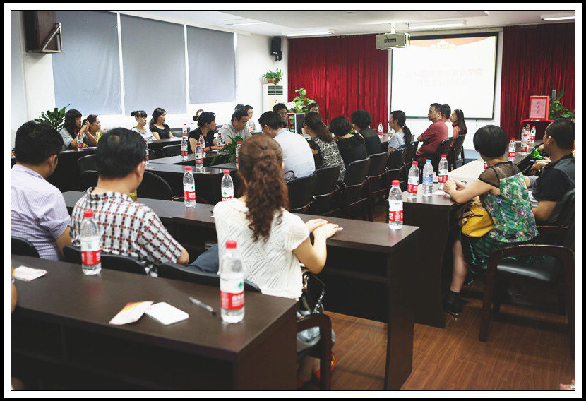 首先,李云河院长对在座家长的到来表示欢迎和感谢,并表达了学院与家长共同的期望和目标,即希望孩子们能在大学中成长成才。其次,他就美院的专业设置、教学模式、师资队伍等方面向家长作了简单介绍。他着重讲解了学院人才培养的两大特色,一是校企合作,多个企业为学生实习提供岗位,为学院大型活动的开展提供经费支持,且在学院举办招聘宣讲会,促进毕业生就业。二是对外交流,学院与台湾大同大学、英国考文垂大学等关系密切,每年有交换生来往交流学习,为扩充学生的知识面,提升学生的创作能力。最后,他概括了学院这几年的发展,并指出在市政府的扶持下,学院会越办越好。他希望家长们能够放心地让孩子在美院学习,希望家长能与学院携起手来,共同为孩子的教育培养出谋划策。