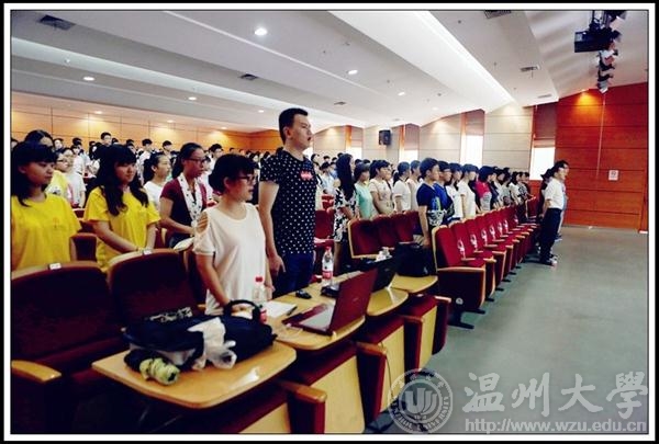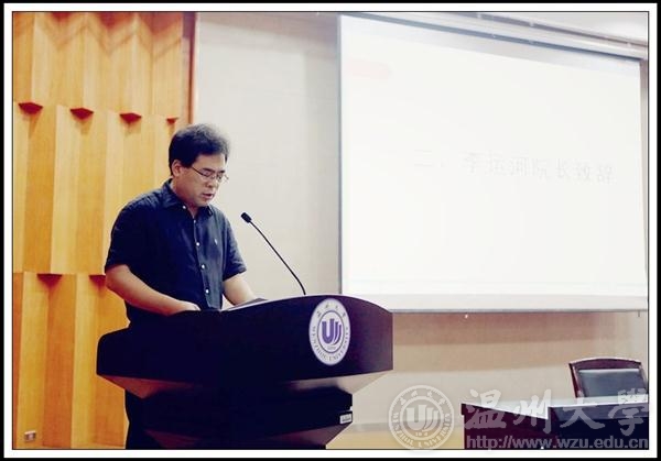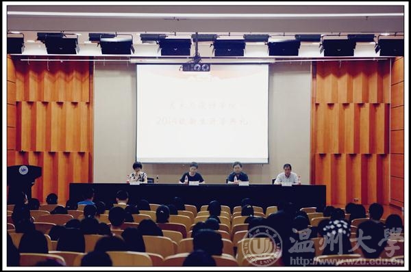 金色九月,美丽温大又迎来了一批新成员。9月19日上午,232位本科生,6位研究生相聚在温州大学岩松堂雁山厅,参加2014级新生开学典礼,共同庆祝新梦想的启程。皇冠博彩 院长李运河教授、党总支书记郑彩莲教授、副院长蔡可群副教授莅临典礼现场,各科室负责人、院各系主任、新生班主任和辅导员出席本场典礼,学生科叶如芳老师主持典礼。