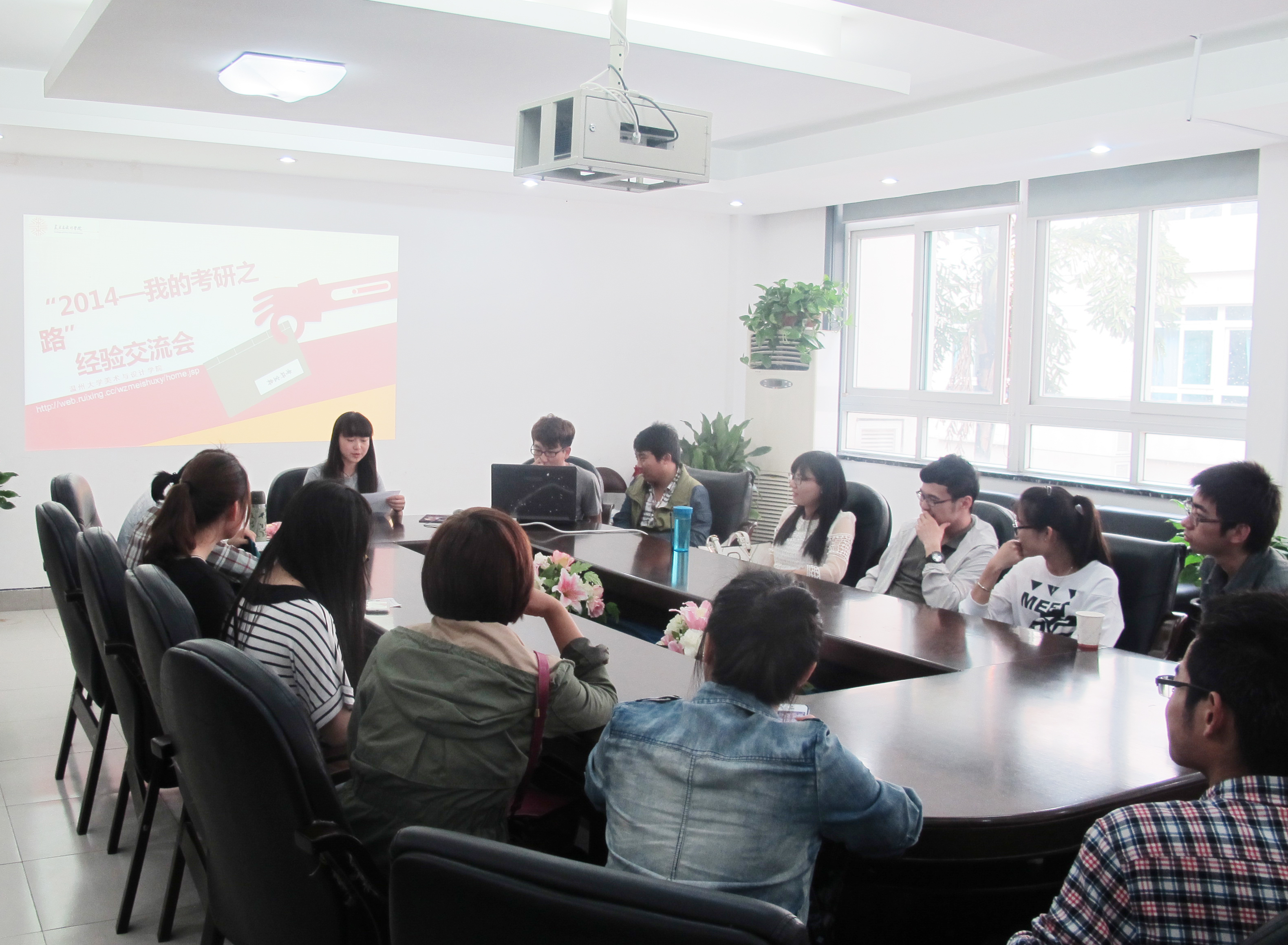 5月14日下午,由皇冠博彩 团委学生会学术科技部主办的“2014梦想的延续——我的考研之路经验交流会””在2B-216顺利举行。学生科副科长叶如芳、辅导员杜茜老师和10级考研录取的同学出席了此次活动。