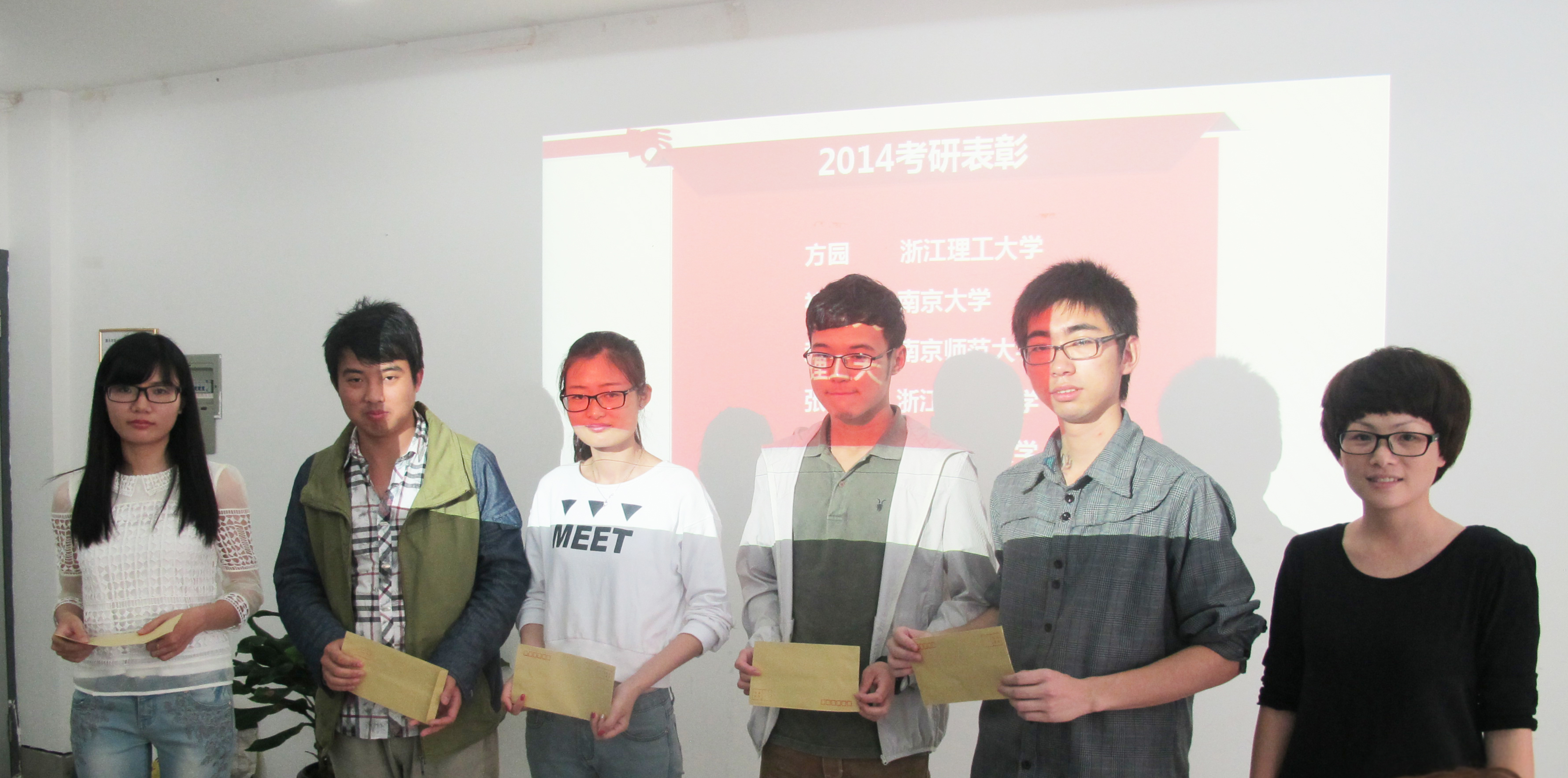 叶老师首先对皇冠博彩 2014年国内考研成功录取的美本师范班褚明敏、服装设计与工程班方圆、环境艺术设计班赵锦程、美本班张伟佳、服装设计班邬仁亚,和国外考研成功录取的环境艺术设计班袁炜楠、平面设计班李奕璠、鞋靴设计班魏子八位同学进行了表彰仪式,并颁发了学院奖金。叶老师讲到,考研经验交流会让在座的每位同学能够真切、直观、详实地体会考研路上的辛苦与喜悦,相信在知识道路上坚持的同学们都会收获更好的自己!