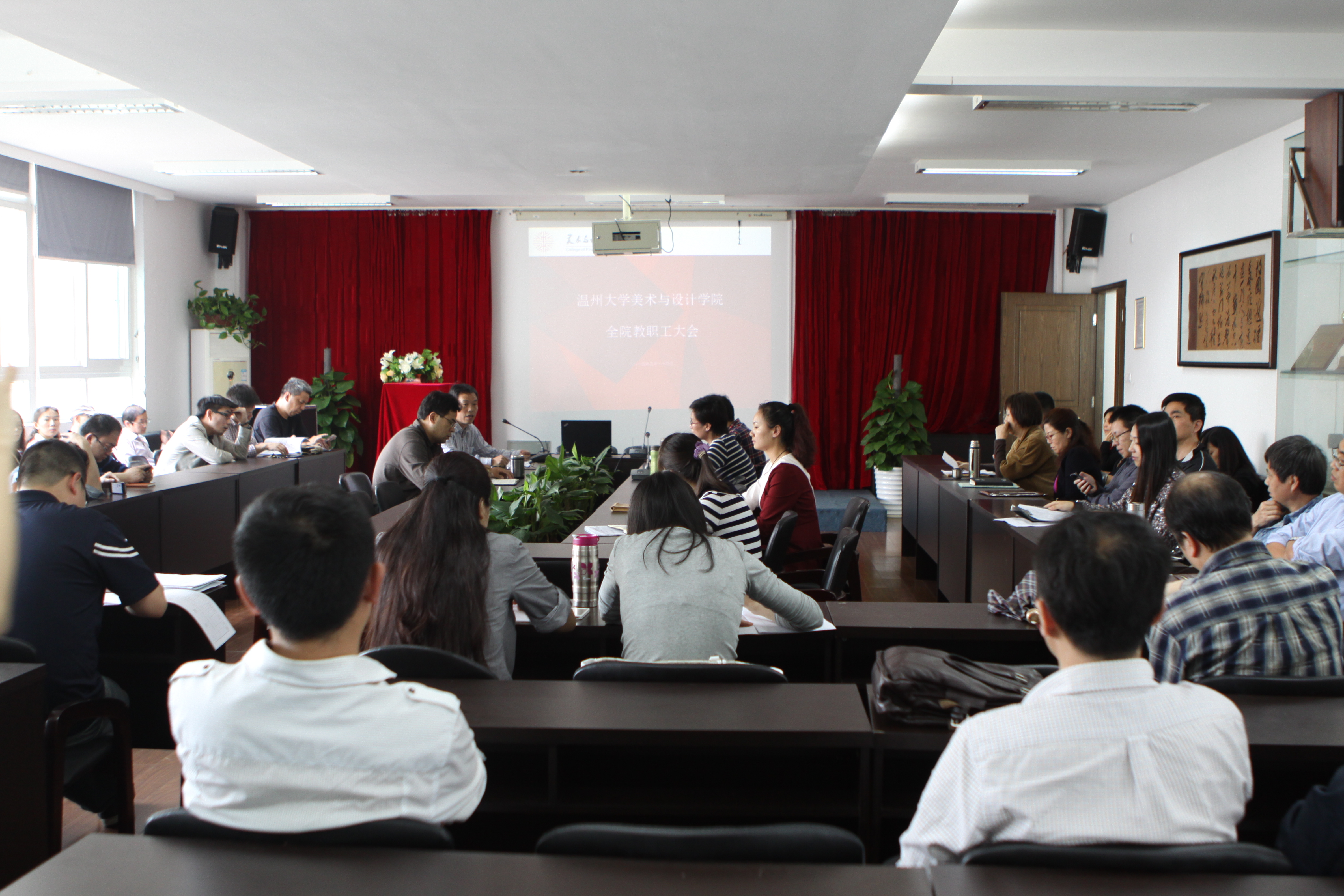 5月14日下午,皇冠博彩 学期中全院教职工大会在2B4001多功能厅举行,院领导李运河、郑彩莲、蔡可群、杨振海及全体教职工出席。院党总支书记郑彩莲主持会议。 会上,蔡可群副院长首先就即将开展的毕业作品展、服装动态秀做了具体工作安排;对各专业人才培养方案修订做了说明,强调要加强对实验室的安全管理工作。杨振海副书记就往届毕业生就业调查、2014届毕业生就业工作及“大艺展”作品收集等工作做了说明与强调。 李运河院长对全院前阶段工作做了总结讲话。李院长首先对学校领导的人事及分工变动做了通报,随后就学院的教学、科研、对外交流等工作做了统一部署。他要求:一要时刻关注学校政策变动,保持敏感度;二要“走出去,引过来”,通过学院交流、教师参展、学院办展等多渠道、多方式加强艺术交流,营造美院艺术氛围;三要将教学、科研有机融合、紧密联系,保持追求艺术理想的同时不断提高服务地方能力;四要专业带头人要在不断凝练专业特色的同时带领团队做出更好成绩。 郑彩莲书记作了总结强调。她指出当前要强调“抓制度”、“强能力”、“促发展”,切实做好学院各项工作。毕业生作品展要提高作品质量;毕业生就业工作要脚踏实地认真做好每一环节,以保证本届毕业生的就业率和下一届的招生工作顺利进行。 会后,学院胡文超、王业宏两位老师就自己在台湾大同大学和美国康奈尔大学的访学经历与在场教师做了精彩分享。校图书馆王希老师也为皇冠博彩 教师做了“提高资源利用、助力教学科研”的讲座。