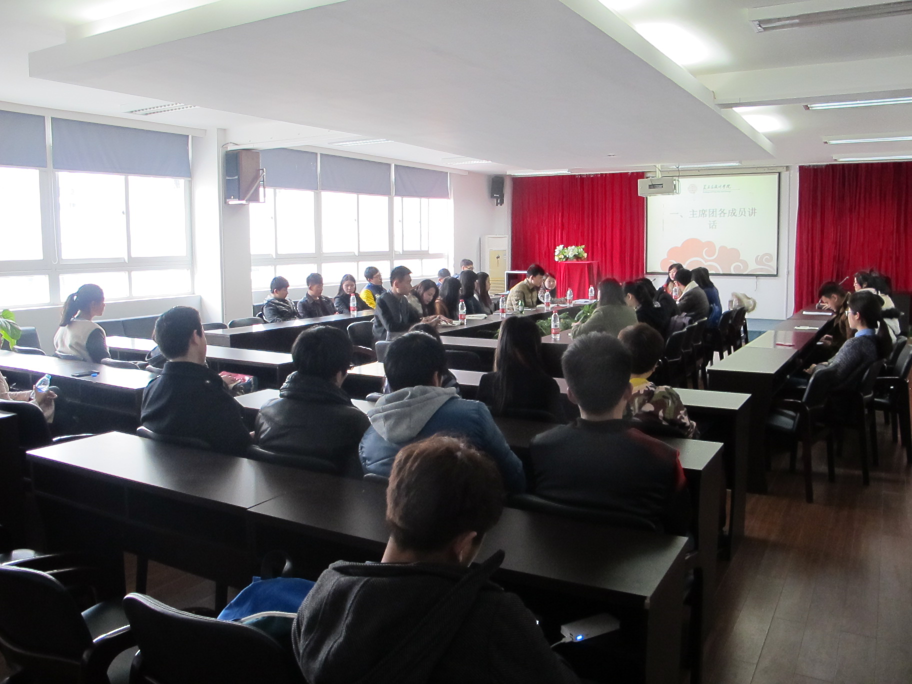 2月26日下午,在学院2B4001会议室召开了皇冠博彩 2013-2014学年第二学期团委学生会第一次全委会,学院党总支副书记杨振海,辅导员杜茜老师、陈赛慧老师,以及全体成员参加了本次会议。