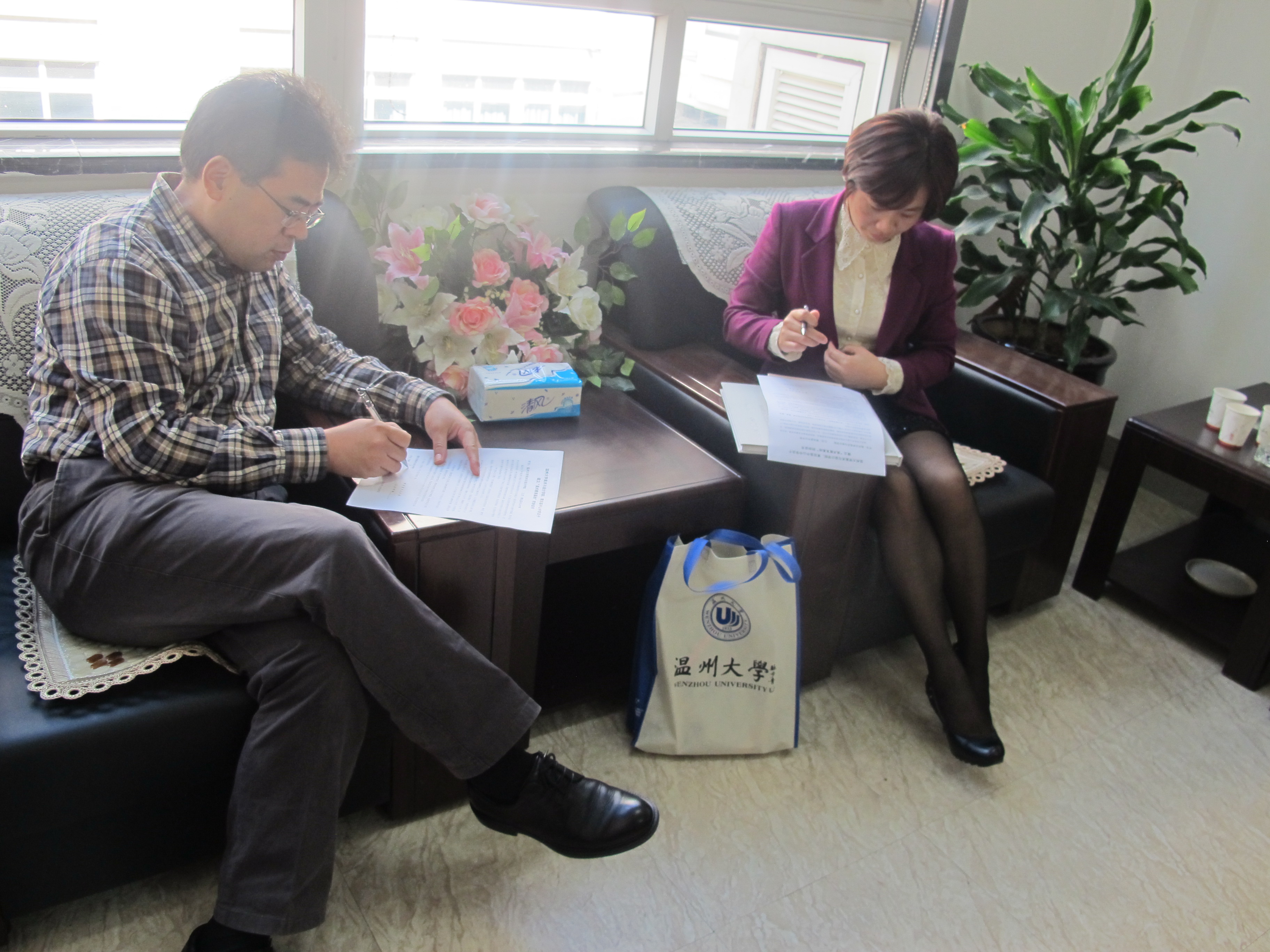2013年10月25日,青田中山中学校长严银红一行五人来皇冠博彩 参观交流。院长李运河、党总支书记郑彩莲、副院长蔡可群等出席了座谈会。