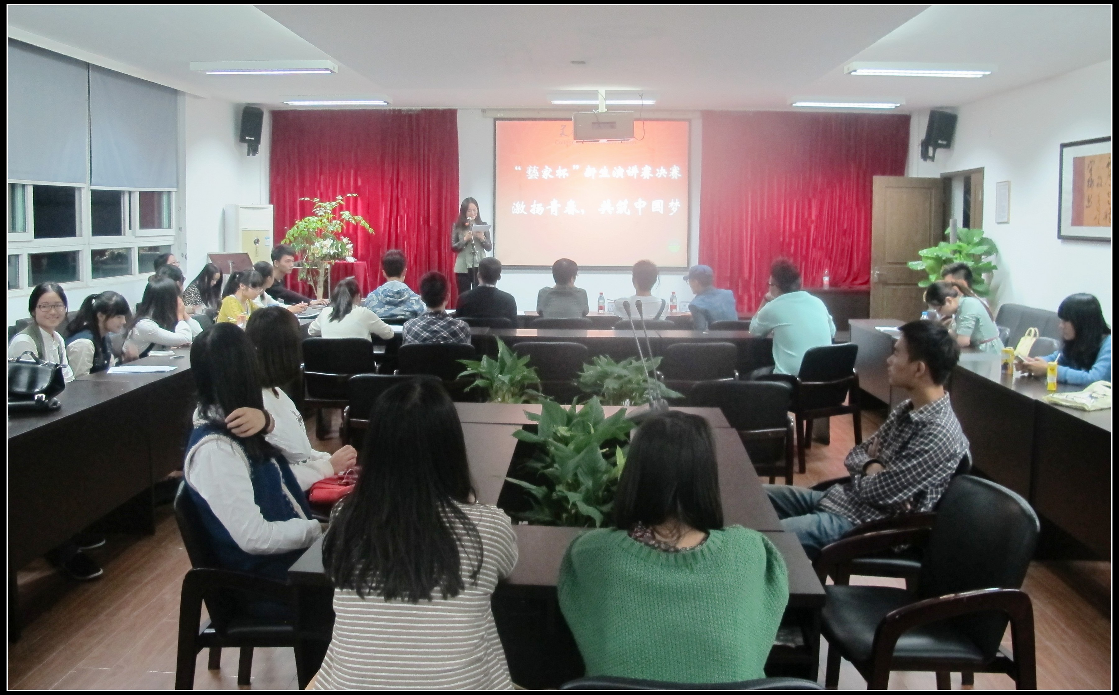 10月16日晚六点,皇冠博彩 2013级新生演讲赛决赛在2B4001顺利举行。校主持队队长谭博,校主持队优秀主持张清泉、刘志远,人文学院研究生贺书伟,皇冠博彩 研究生吕诚担任本场比赛评委。出席本场决赛的还有院学生会主席团成员及部分2013级新生。 本次大赛以“激扬青春,共筑中国梦”为主题,号召广大新生朋友们用梦想诠释青春,用青春实现梦想。大赛由皇冠博彩 团委学生会主办,由学风纪检部和创业实践部承办,由艺家美术用品协办。 经过初赛的选拔,12名选手脱颖而出,挺进决赛。他们在讲台上热情演讲,抒发自己对“中国梦”、“青春梦”的看法,表达自己立志报国的信心与决心。9号选手高洁宁批判西湖游客乱扔垃圾的不文明现象,提出了自己“我的梦里,祖国一派山清水秀!”的梦想。12号选手叶海勇则展现了对“梦想坚持”的思考,讲述了“志向是梦想的升华”的励志故事。11号选手张家豪呼吁青年朋友们把握好自己的青春筹码,努力学习,实现自己的“青春梦”,才能推进“中国梦”的实现……各位选手见智见仁,慷慨陈词,展现了美院新一届的青春活力与激情。 比赛环节全部结束后,人文学院贺书伟对比赛进行了点评。对于选手们在解题上的突破,他对大家表示了肯定,并给出了宝贵建议,希望选手们在演讲过程中表现出的自信、感染力能够更加完善。他也期待选手们能将演讲的风采带进生活。 缤纷中国梦,我辈青年携手共筑;华美青春秀,美院学子各展风采。最终,13服工班刘子媛以精彩的演讲和强烈的舞台感染力夺得桂冠。 附获奖名单: 一等奖:刘子媛 二等奖:叶静文、叶海勇 三等奖:董冰红、黄纯、张开源、张家豪