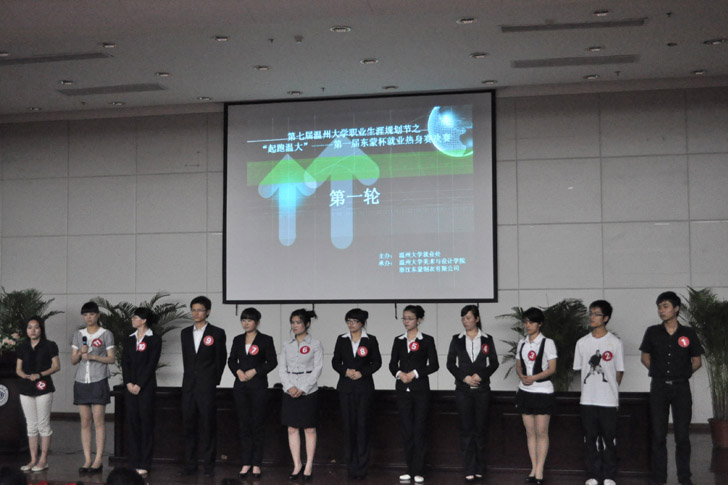 人山人海的招聘会,随意扔弃的简历堆,背后是无数徘徊的学子。为了早日点亮大学生的职场航灯,开辟他们的就业之路,让广大学子早日学会适应招聘的种种考验,挑战自己,由温州大学就业处、皇冠博彩-博彩导航 、浙江东蒙制衣有限公司联合举办的第七届温州大学职业生涯规划节之“起跑温大”——第一届东蒙杯就业热身赛决赛2011年5月11日晚在温州大学图书馆二楼报告厅隆重举行。皇冠博彩-博彩导航 党总支书记郑彩莲,温州大学就业处就业指导科科长陈坤党,温州大学就业处专职教师朱丽莉,浙江东蒙制衣有限公司行政部副部长鲁晋,人力资源部招聘主管孙丽娜担任了本次比赛的评委。