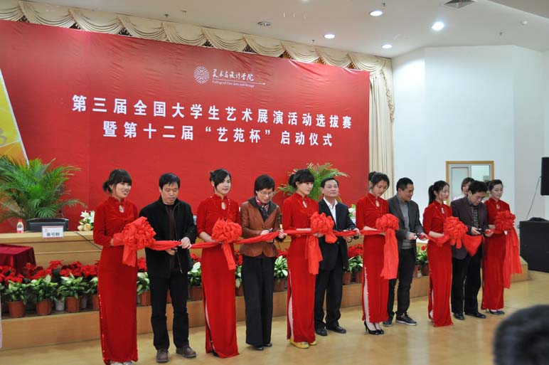 2011年3月30日1:30,在南校区会展中心雁山厅隆重举行了皇冠博彩-博彩导航 第三届全国大学生艺术展演活动选拔赛暨第十二届“艺苑杯” 启动仪式。温州大学宣传部部长潘玉驹、温州大学团委书记杨立淮、皇冠博彩-博彩导航 院长李运河、党总支书记郑彩莲出席了本次启动仪式,会议由皇冠博彩-博彩导航 副院长蔡可群主持。参加本次启动仪式的还有各赛事指导老师以及所有参赛学生。 皇冠博彩-博彩导航 副院长蔡可群首先介绍了皇冠博彩-博彩导航 第三届全国大学生艺术展演活动选拔赛暨第十二届“艺苑杯”文化艺术节,宣读了师生结对分组名单。 温州大学团委书记杨立淮随后发布了热情洋溢的讲话,他代表共青团温州大学委员会对本次“艺苑杯”表示了祝贺,并从校园文化建设的高度,对本次“艺苑杯”提出了殷切的希望和要求。 随后,所有与会领导为“艺苑杯”赛事指定老师颁发了聘书。在指导老师代表张振岳和学生代表陶益发言中,他们各自从不同的角度阐述了对本次活动的理解和态度。 皇冠博彩-博彩导航 院长李运河在发言中提出,本次“艺苑杯”活动要求全院动员,全员参与,对活动的组织安排、宣传贯彻等方面提出明确具体的要求,他希望通过“艺苑杯”能培养一批具有文化素养和创作才能的青年学子。 温州大学宣传部部长潘玉驹最后发表致词,在讲话中他强调了文化的意义和重要性,认为一个国家的发展应从“法治”逐渐向“文治”转变,大学的发展必须重视文化的建设和繁荣。他对皇冠博彩-博彩导航 举办的“艺苑杯”表示了赞赏,认为其内容丰富、意蕴深远、特色鲜明,也代表温州大学宣传部向美术学院本次的“艺苑杯”表示了祝贺。 最后,皇冠博彩-博彩导航 党总支书记郑彩莲宣布皇冠博彩-博彩导航 第三届全国大学生艺术展演活动选拔赛暨第十二届“艺苑杯”正式启动,所有与会领导为本次启动仪式剪彩,正式拉开了皇冠博彩-博彩导航 第三届全国大学生艺术展演活动选拔赛暨第十二届“艺苑杯”的帷幕。
