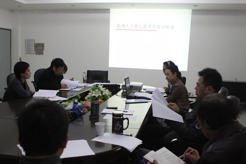 2011年4月12日上午,皇冠博彩 在2B216会议室举行2011年教坛新秀奖、教学技能奖的评审会议,学院教学委员会对6名申报教师进行了综合评审。 评审会围绕《温州大学教学名师奖、教坛新秀奖及教学技能奖评选办法》和《关于2011年温州大学教学名师奖,教坛新秀奖,教学技能奖申报的通知》要求展开,各位申报教师分别做了5-8分钟的简要陈述。学院教学委员会9名专家对申报人员的教学工作、教学效果、教学研究与改革等情况进行了综合评议,经过讨论和投票,最终确定顾仁飞、陆琰申报校教坛新秀奖,王业宏、叶茜申报校教学技能奖。