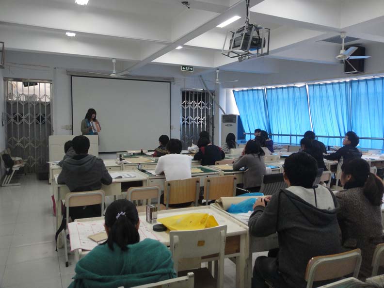 2011年3月27日下午2点,皇冠博彩 服装楼2a306的教室里,素质拓展培训的书法班如期开班。本次的指导老师为皇冠博彩 国画班的优秀学生,她首先教没学过的同学们练楷体,而已有一定基础的同学则继续练习自己原来的字体,并很认真负责地进行逐一指导。