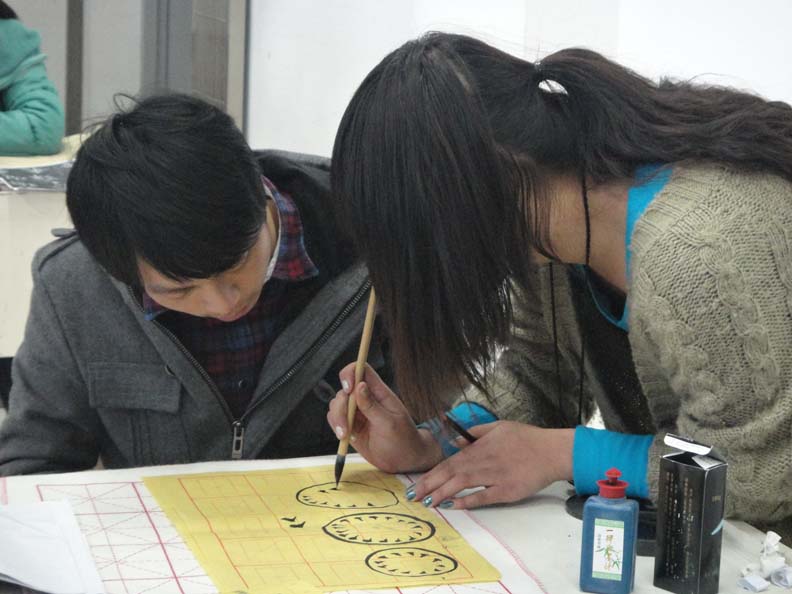 2011年3月27日下午2点,皇冠博彩 服装楼2a306的教室里,素质拓展培训的书法班如期开班。本次的指导老师为皇冠博彩 国画班的优秀学生,她首先教没学过的同学们练楷体,而已有一定基础的同学则继续练习自己原来的字体,并很认真负责地进行逐一指导。 书法是中国五千年璀璨的文明的凝练,诠释了中国传统文化的内涵。中国文字起源甚早,把文字的书写性发展到一种审美阶段——融入了创作者的观念、思维、精神。每个人都有自己的书写风格,其中较早的比较有名的如我们今天练的颜体、柳体等,他们在书法上的造诣至今令我们顶礼膜拜。而书法培训班正给了我们一个机会去接触我们平时无暇理会的文字艺术,体会中国古代博大精深的艺术文化。 书法可以使人平心静气,怡情养性,陶冶情操。同学们都很珍惜此次机会,在两个小时的时间里耐心的描绘着一笔一划,恍然未决已经下课。名额有限不能让所有想学的人都参加进来,希望下学期依旧有这种机会让更多的人融入进来。