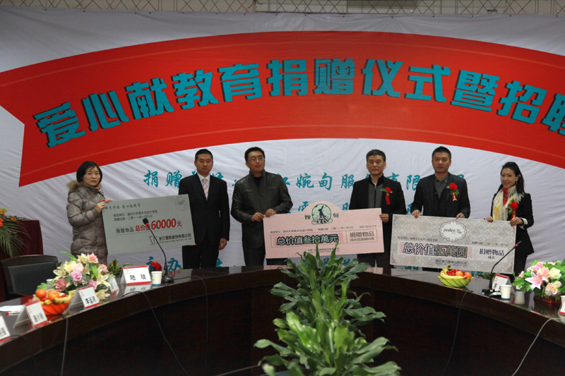 2011年1月6日上午9点,皇冠博彩-博彩导航 爱心献教育捐赠仪式暨招聘会在大学生活动中心白鹿厅隆重举行。温州大学副校长任柏强、温州大学就业工作处处长孙广福、温州大学教务处处长施小秋、皇冠博彩-博彩导航 院长李运河、浙江婉甸服饰有限公司董事长蒋海、浙江飘蕾服饰公司董事长黄瑞东、浙江雪歌服饰公司董事长助理熊伟贤、服装系主任姜岩,服装系副主任张振岳,展示陈列教研室主任金晨怡以及皇冠博彩-博彩导航 全体服装系学生100多人出席了本次仪式,会议由皇冠博彩-博彩导航 党总支书记郑彩莲主持。 仪式中,皇冠博彩-博彩导航 院长李运河院长首先介绍了此次活动的主题,向来宾简单介绍了近几年学院在培养人才所做的努力和教学成效。 温州大学就业工作处处长孙广福,教务处长施小秋,向浙江婉甸服饰、浙江飘蕾服饰、浙江雪歌服饰三家企业分别赠送了“皇冠博彩-博彩导航 校企合作定点单位”铜牌。浙江婉甸服饰、浙江飘蕾服饰、浙江雪歌服饰随后向温皇冠博彩 捐献了总价值42.5万的服装与面料等物品,服装系系主任姜岩、副系主任张振岳、服装展示教研室主任金晨怡代表学院接过赠品。 在企业讲话中,浙江婉甸服饰董事长蒋海指出高校是培养人才的摇篮,企业对皇冠博彩-博彩导航 的捐献衣方面企业对教育事业的支持也是为温州高校培养服装人才的一种期望,尽所能提供一些资源供学生实践,帮助学生成长,培育学生的动手能力和适应社会的能力。飘蕾服饰董事长黄瑞东则认为,企业应本着尊重人才,重视教育的原则,将过季库存的服装与面料送到皇冠博彩-博彩导航 的学生做教学资源, 不仅符合建设和谐社会、和谐校园的要求,而且是一种爱心传递、资源共享的具体体现,同时为丰富学院服装教学资源、更好地满足师生实践教学中对服装的需求。并想以此为契机,与温州大学建立长期合作友好关系。 温州大学任副校长柏强为捐赠仪式致谢辞。他用四句话来总结此次捐赠会的意义:第一:校企合作正在形成一种好的导向。温州知名服装企业来我校共商育人大计,探讨专业发展前沿,这是我校在实施“引进来,走出去”校企合作战略取得的又一次成就;第二:校企正在形成一种好的氛围。通过爱心捐赠丰富教学资源,有利于让学生在校所学与企业实践有机结合,构建绿色服装生命链, 可以实现人才资源、教学资源、技术资源的高度集成与共享,完成最优配置;第三:校企合作正在形成一种好的合力。通过优势互补、资源共享,提高技能型人才的培养质量,让学生早日成为高层实用型技术型人才;第四:本次活动展现了一个好的企业形象,这就是负责任的形象,对人民负责的形象。温州企业在做大做强企业的同时,越来越多的企业家感恩奉献,热心公益,积极主动促进高校教育,促进社会主义和谐社会建设,充分体现了企业家敢于负责、勇于担当的社会责任感。此次捐赠可以激励更多的企业家参加捐赠,回馈社会,服务人民。 启动仪式结束后,企业家代表与学生进行了亲切的座谈。婉甸服饰的人力部资源部经理韦天知,飘蕾服饰的人力部资源部经理陈明,雪歌服饰人力资源经理刘玉山,还有温州商会服装设计师委员会秘书长曾贵向学生介绍了职业生涯计划和面试的技巧。随后温州大学毕业的现任浙江婉甸服饰的设计师赵楚楚和林伟亚,浙江飘蕾服饰的企划主管叶括群以及雪歌服饰工程部设计师徐贤所和大家分享工作经历,并现场回答了同学的提问。 本次活动学生们受益颇多,08展示的曾鑫焱同学代表发言说:“我们感觉到了温州皇冠博彩,最直接就是我们的展厅现在充满了爱心,我们可以更好的进行实践练习,我是大三的学生,明年就要毕业了,我们感谢有今天这样一个机会能和企业面对面进行交流,对我们的职业生涯提供了很大的帮助。” 最后,在大四学子们投简历,预约面试的火热氛围中,结束了今天的招聘会。会后三个企业代表观看了金晨怡和郑敬玉老师的推“陈”出“新”课程联展。浙江婉甸服饰董事长蒋海、浙江飘蕾服饰董事长黄瑞东、浙江雪歌服饰公司董事长助理熊伟对作品给予了高度的评价。