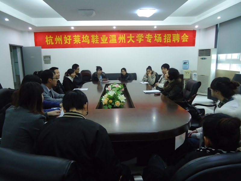 2010年11月30日下午1点半,皇冠博彩 2B216会议室举办了杭州好莱坞鞋业温州大学专场招聘会。杭州好莱坞鞋业有限公司总经理成雯亲自前来任面试官,皇冠博彩 07级鞋靴设计班的同学们积极应聘。 成雯总经理一开始就询问在座的各位同学,包括为什么当初选择绘画、文化功底如何等等。谈话中,作为校友的她向同学们讲起她过去的大学时光,表示大学生多学点东西总是好的。为了能了解在座的每位同学,成雯总经理让同学们轮流进行自我介绍,说明近几年的工作目标。期间,她向同学们了解起专业方面的能力。 经过一轮简单介绍,6位同学脱颖而出,按地域被平均分成3组,每两人一组依次单独面谈。成经理考察了同学们的专业能力水平,吃苦耐劳的品质及设计方向等多方面。希望公司能在此次招聘会中相中千里马,培养出属于自己品牌的中国化的设计师,打造世界级品牌,并真诚鼓励同学们努力,实现自己的目标。 在这接近两个小时的招聘会中,同学们畅所欲言,递交精心准备的个人简历,希望能被好莱坞公司所青睐,让自己学有所用,一展抱负。最终的应聘结果不日即将揭晓,敬请期待喜讯。