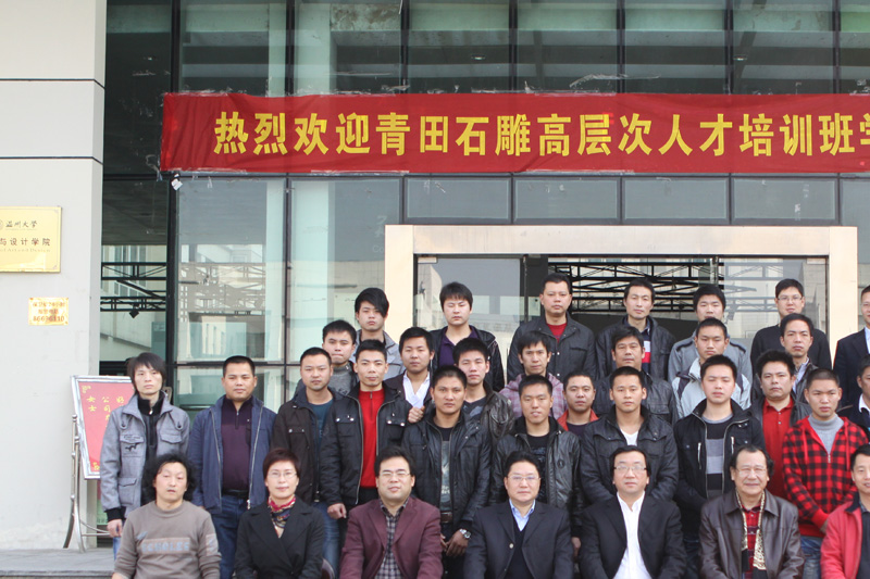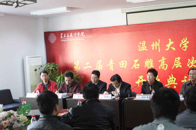 2010年 12月2日,第二届青田石雕高层次人才培训班开学典礼在皇冠博彩-博彩导航 举行。温州大学党委委员、组织部部长蔡曙光、中共青田县委组织部部长潘志强、中共青田县人才办主任叶少华、皇冠博彩-博彩导航 院长李运河、党总支书记郑彩莲、副院长舒湘鄂、办公室主任尹乃军、温州市厂长经理人才公司叶晓霞及全体学员参加了典礼,郑彩莲书记主持开班仪式。 典礼上,皇冠博彩-博彩导航 院长李运河对青田学员的到来表示热烈欢迎。他指出,此次培训班的成功举办是2008年首届青田石雕高层次人才培训举办以来结的又一次硕果,皇冠博彩 将进一步提供优质的师资和专业理论指导,为学员提供一个更好的学习平台,为青田石雕艺术进一步发扬光大尽绵薄之力。 中共青田县委组织部部长潘志强在典礼上作讲话。他首先代表县委、县政府,对培训班的开办表示热烈的祝贺;对温州大学、温州市厂长经理人才公司、皇冠博彩-博彩导航 给予的大力关心支持表示感谢。他指出,举办2010第二届青田石雕高层次人才培训班,是加强青田县石雕优秀拔尖人才队伍建设的一项重要举措。通过举办培训班,可让学员接受高质量的艺术文化教育和浓厚的艺术氛围熏陶,对进一步提升青田石雕整体的艺术创作水平和创新能力具有重大意义。 温州大学党委委员、组织部部长蔡曙光作了重要讲话,并提出三点希望:希望青田县能一如既往地支持温州大学“服务地方”的办学理念,进一步加强与温州大学的合作和交流;希望我校任课教师恪尽职守,确保教学质量,加强与青田石雕高层次人才的交流;同时也希望各位学员珍惜机会,高度重视培训对提升自身职业素养的积极作用,做到学有所获、学以致用。