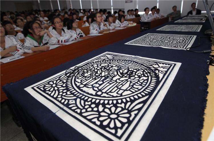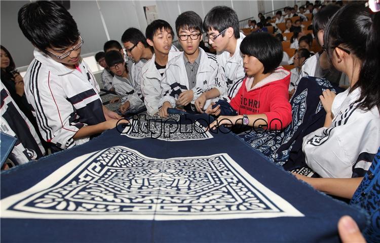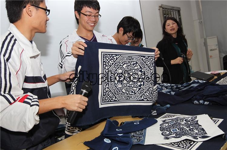 2010年11月14日,“传承与创新——情系温州蓝夹缬”展览及讲座在温州市第十五中学举办,皇冠博彩-博彩导航 讲师王业宏博士为学生带来了“传承与创新——情系温州蓝夹缬”的讲座,讲述了温州蓝夹缬艺术的源流、现状、工艺流程、艺术特征及创新设计。并通过一些实物展示,与观众互动、交流,讨论对蓝夹缬的认识和设计开发的思路,引发广泛兴趣。 蓝夹缬系浙南地区现存的一种单色夹缬工艺被视为古代技术的活化石,现已成为国家级非物质文化遗产加以保护和传承。