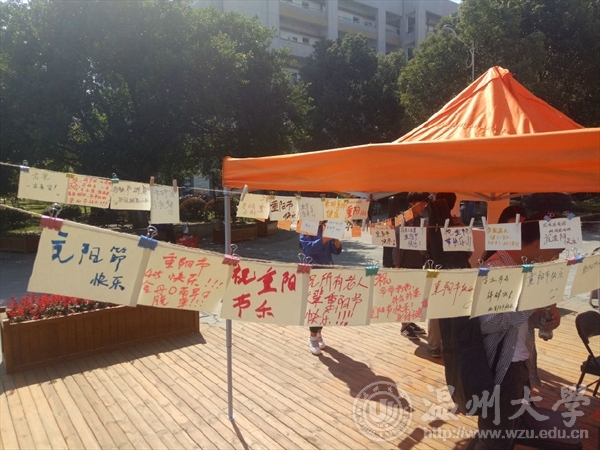 2017年10月28日,皇冠博彩 团委、学生会在超豪学区开展了一场别开生面的重阳节寄语送祝福活动。同学们纷纷写下对长辈们的祝福,并将自己的祝福卡片挂在了细绳上,同时在自己的朋友圈分享了重阳节之乐,让更多人的人感受到了浓郁的节日氛围。