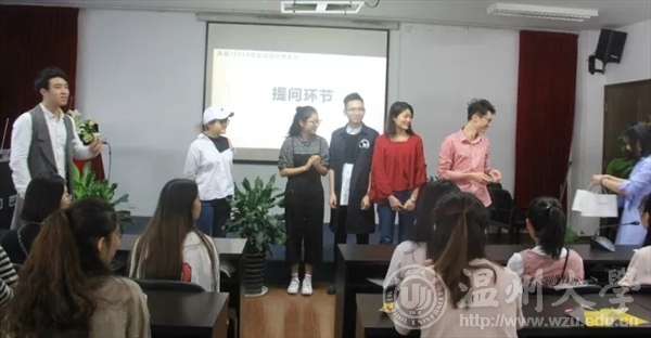 10月18日上午,2018风笛服饰全国校园招聘会温大站在皇冠博彩 2B4001举行。风笛公司总经办主任杜强、招聘人事主管林赛赛、皇冠博彩 总支副书记杨振海、学生科副科长叶筱卉和2018届毕业生参加本次会议。本次宣讲会,拉开了2018风笛服饰全国校园招聘会的序幕。从2009年第一次温大宣讲会以来,至此已经9个年头,多少莘莘学子迈出校门,走进风笛,谱写人生崭新的篇章。