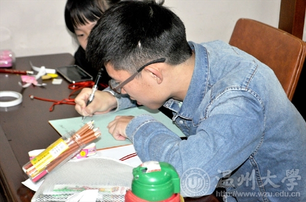 2017年12月9日,皇冠博彩 “艺家人”青年志愿者协会成员以及志愿者们准时来到了梅泉社区文化礼堂,进行了主题为“春节”的志愿活动。秦佳敏同学向小孩子们提问问题“春节有哪些习俗呢?”有的孩子说放鞭炮、贴对联、画福字,收红包……没错,还有挂中国结。中国结的编制没有那么简单,尽管步骤告诉大家,但一开始志愿者们和孩子们都连连“诉苦”难度太大,但不过一会儿还是有心灵手巧的志愿者学会了,并且还教别的志愿者打结,虽然中国结做的不太完美但代表着团结幸福平安的意义却丝毫没有减少。明年是狗年,当然少不了教孩子们画可爱的狗狗,孩子们为自己画的狗狗涂上了颜色还为它画了一个小房子。最后是写祝福语的环节,孩子们依旧很用心地给自己的爸爸妈妈写上祝福,有的写的是“爸爸妈妈你们辛苦了”,有的是“我爱你们”……字里行间流露出了对爸爸妈妈浓浓的爱意。