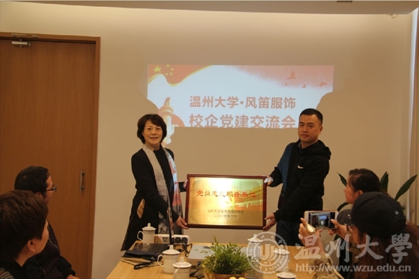 交流会上,皇冠博彩 党总支书记张丽萍在温州大学·风笛服饰校企党建交流会上谈到:习近平总书记在党的十九大报告中指出党的基层组织要成为确保党的路线方针政策和决策部署在基层的贯彻落实,成为宣传党的主张、贯彻党的决定、领导基层治理、团结动员群众、推动改革发展的坚强战斗堡垒。此次在风笛服饰设立临时党支部,是基于新时期贯彻落实全国全省高校思政工作会议精神、响应高校基层党建全面落实年活动,为基层党组织和广大党员深化校企合作、服务地方发展更好地发挥作用打造载体和平台的需要,同时也是推进‘两学一做’学习教育常态化制度化的一项重要举措。”公司董事冯益丹对学院在公司设立临时党支部表示赞赏,并表示以此次党建合作为契机,加强日常党建交流,更好地发挥党建在产教深度融合、合力人才培养等诸多校企合作事宜中的引领作用。张丽萍书记还表示,“学生即将在企业参加为期一个月的实训课程,我们希望通过设立临时党支部与校外党员服务基地,能真正实现我们的学生走到哪里,思想政治工作就做到哪里,党的温暖就送到哪里。