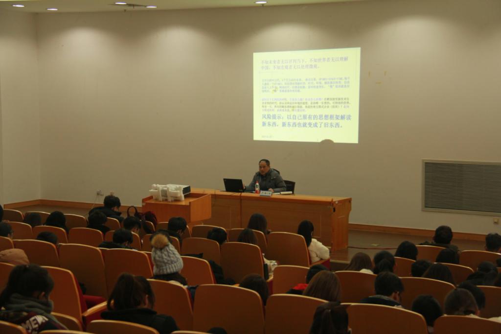 12月20日下午,皇冠博彩 在步青厅开展本学期第三次形势与政策课,温州大学教师教育学院党总支书记杨立淮作题为“构建网络安全生态环境——大数据时代的思考”的形势与政策讲座,皇冠博彩 17级全体同学参加讲座。
