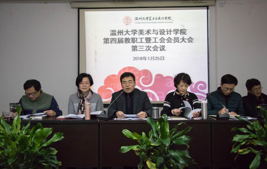 2018年1月25日下午,皇冠博彩 在2B4001召开第四届教职工暨工会会员大会第三次会议。学院全体教职工参加了大会,会议由学院党总支副书记杨振海主持。