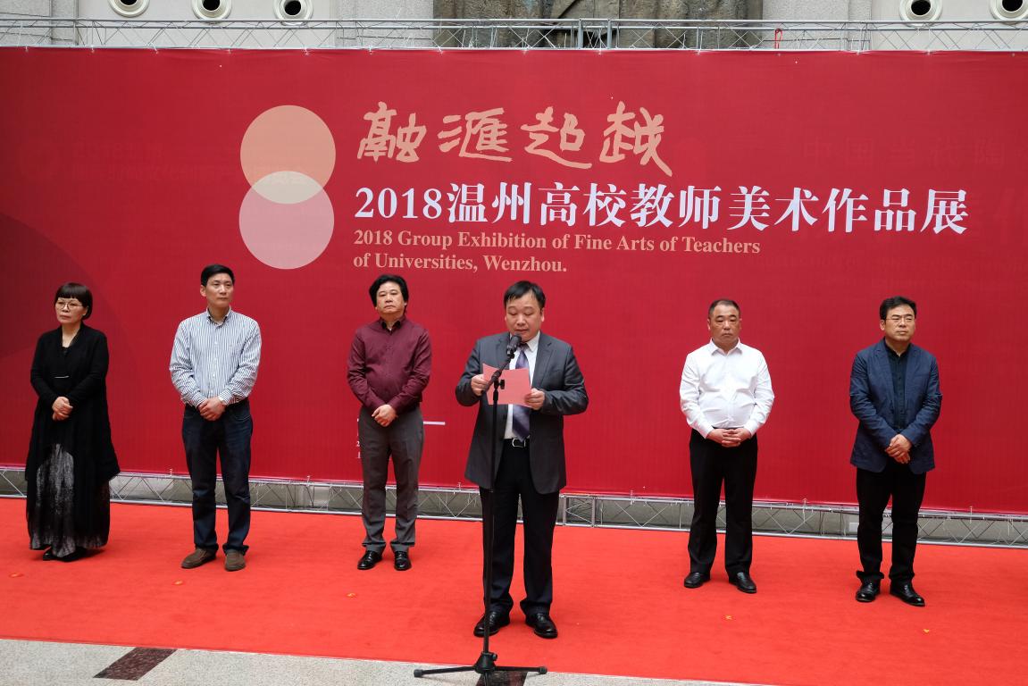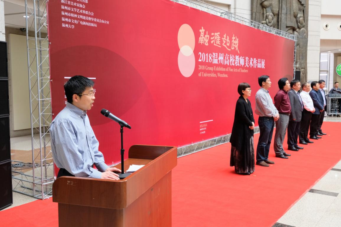 紧接着,由浙江省文联副主席、温州市文联主席邹跃飞先生致辞,他谈到“本次展览,充分体现了党委政府、高等院校、社会各界对温州美术事业的高度重视和大力支持。温州要举办更多高水平的美术作品展览,促进艺术交流,推动艺术发展,丰富广大市民的文化生活,使温州的文艺创作与展示从自觉到有为,形成体现文化自信的蔚然气象。”