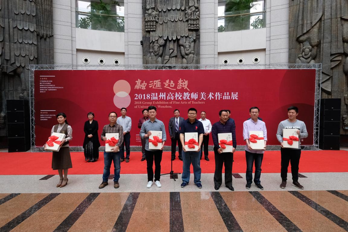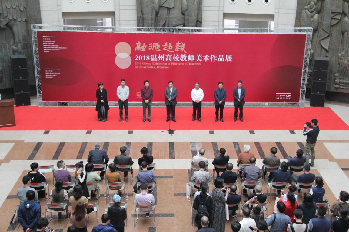 4月3日上午,“融汇超越”——2018温州高校教师美术作品展在温州市博物馆隆重开幕。出席开幕式的领导嘉宾有:温州大学党委副书记赵敏,中共温州市委宣传部副部长魏平生,浙江省文联副主席、温州市文联主席邹跃飞,温州市文联副主席、皇冠博彩-博彩导航 院长李运河,温州市文明办副主任余庆,温州市文广新局副局长李方喜,浙江省美术家协会副主席、温州市美术家协会主席蔡瑞蓉,特邀嘉宾还有原校党委书记陈艾华,市教育局高教处处长黄万统,另有叶玉昶、沈尧伟、钟式震、马亦钊、张如元、袁纲平、金松、陈钦权等老教授,美术家协会戴宏海、张成毕、陈旭海、李崇高等同仁,书法家协会汪廷汉、陈出新、陈胜武等同仁,书画院郑方伟、陈默、张真恺、林翼如等同仁,此外,学校老干部工作部部长陈慧、成人(继续)教育学院院长胡记芳等学校部门(学院)领导,皇冠博彩 党总支书记张丽萍,副院长谢子静、张晓剑,副书记杨振海,学院师生代表200余人参加了开幕式。群贤毕至,少长咸集 。
