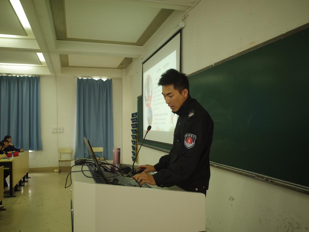 4月11号下午,由皇冠博彩 牵头举行的校园安全月活动——消防安全知识讲座在南校区3A-201召开。讲座由从事消防工作14年的俞贵明教官主讲,美院大一同学及保卫处工作人员参加了讲座。