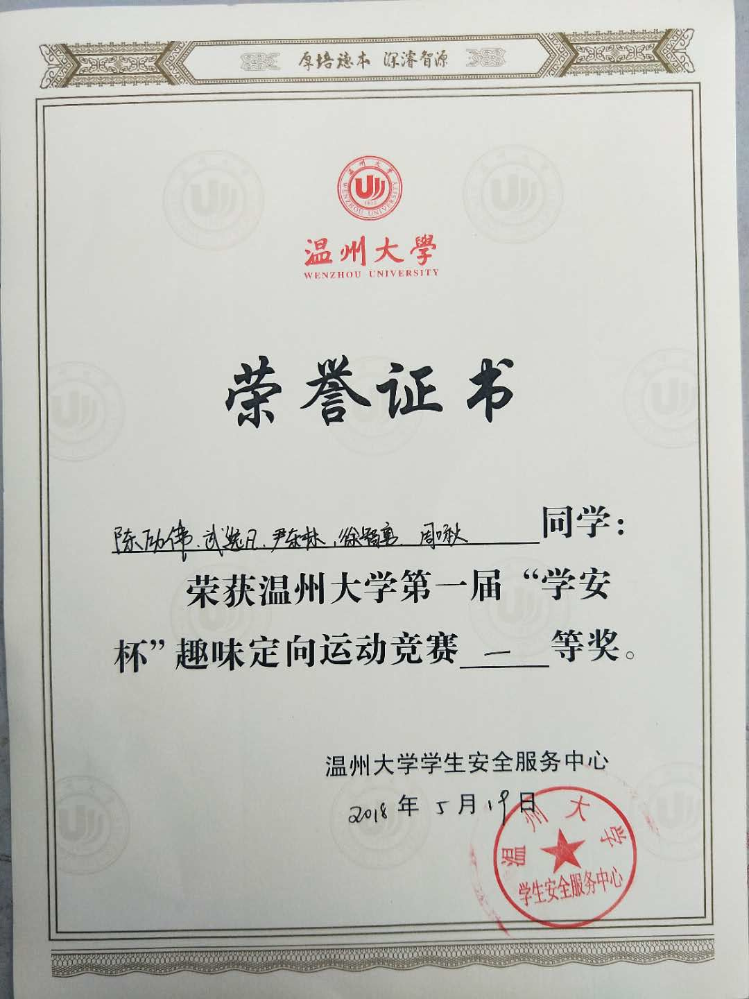 5月19日温州大学第一届“学安杯”趣味定向运动竞赛在大学生活动中心顺利落下帷幕。在当天下午学安杯的颁奖典礼上,皇冠博彩 参赛学生代表陈励伟、武逸凡等六名同学成功拿下一等奖的宝座。