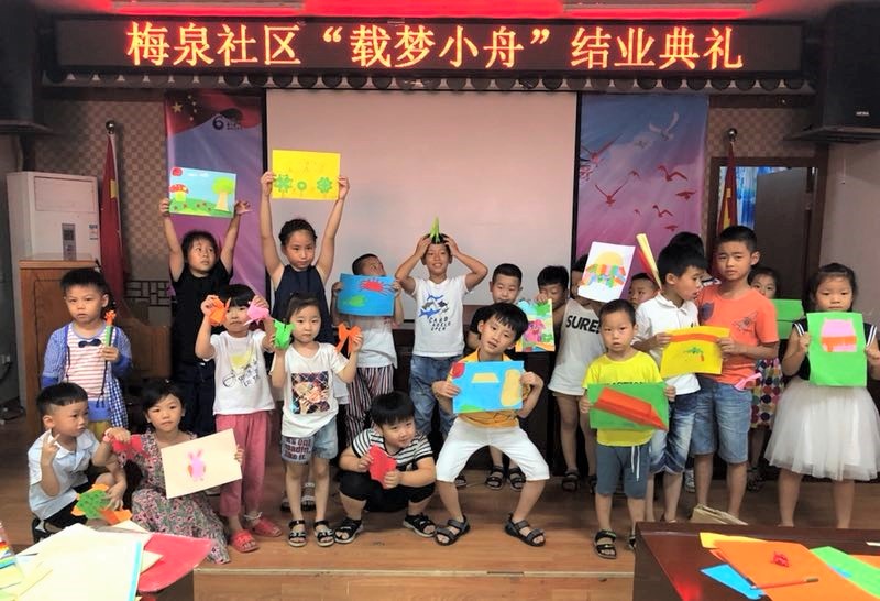 2018年6月23日,温大皇冠博彩 “艺家人”青年志愿者协会的志愿者们如约来到梅泉社区文化礼堂,进行了本学期最后一次梅泉支教活动,主题为手工剪贴画暨结业典礼。