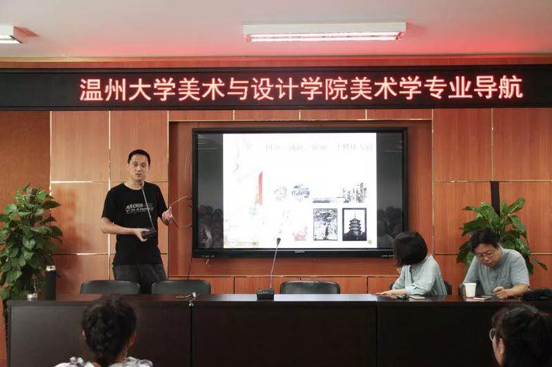 美术学专业系主任陈旭海老师向同学们介绍了温州大学美术学专业悠久的历史和雄厚的师资力量。在职老师业务能力突出,在全国美展和双年展上都获得了非常优秀的成绩。在专业教学方面,美术学师范专业分为三个方向有:国画、油画和版画。根据同学个人意愿并参照学生的平时成绩在大三进行专业方向选择。在就业方面,实践教学特色鲜明,人才培养成果突出。