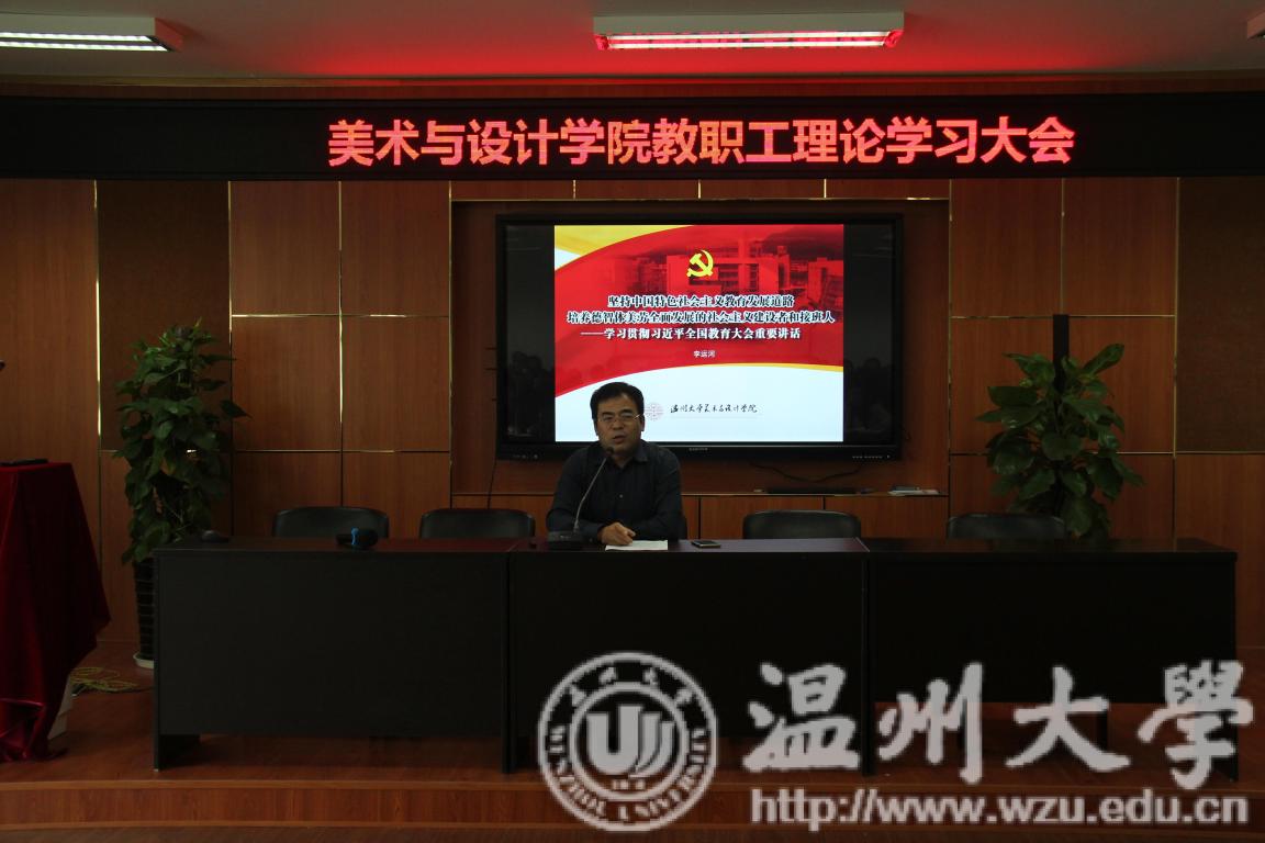 10月17日下午,皇冠博彩 在2B4001召开教职理论学习大会。学院领导班子成员,党总支委员,各支部书记、系(科)主任及全体教职工参加了学习会。会议由学院党总支书记张丽萍主持。 院长讲党课:坚定办学方向 创新理念思想 李运河院长传达学习习近平总书记全国教育大会重要讲话精神。李院长指出:“习近平总书记的讲话强调教育是功在当代利在千秋的德政工程,是国之大计、党之大计;教育的根本问题是‘培养什么人,怎样培养人,为谁培养人’;我们要坚持中国特色社会主义发展道路,立足基本国情,坚持改革创新,培养德智体美劳全面发展的社会主义建设者和接班人。”李院长认为,习近平总书记关于“培养什么人”的论述,有两个关键词:“德智体美劳”和“建设者和接班人”。纵观历史,每个国家都是按照自己的政治要求来培养人的,我们一是要坚定社会主义办学方向,为党为社会主义培养人;二要有新理念,新思想,新办法,面对新环境,新对象,要坚持改革创新,在坚定理想信念、厚植安国主义情怀、加强品德修养、增长知识见识、培养奋斗精神、增强综合素质等六个方面下功夫,办人民满意的教育。 “课程思政”专题讲座:充分理解内涵 有效把握实施策略 教师教育学院副院长彭小明教授做《“课程思政”的内涵与实施策略》辅导讲座。如何将“课程思政”融入专业教学?首先要弄清“课程思政”的内涵,其次要明白为什么提倡“课程思政”,最后要掌握“课程思政”的是实施策略。彭小明教授对这三个问题进行了系统的讲解,让全体教职工受益匪浅。课程思政顾名思义就是在(通识、专业)课程中渗透政治思想教育,广义地说是指在课堂教学中对学生进行整治思想、道德品质和人格个性等方面的教育。新时期我们高校的德育工作提倡“课程思政”,是因为“全课程、全方位、全过程、全员育人理念”没有完全树立起来。“课程思政”的实施策略首先要加强师德师风建设,教师要以德立身,以德立学,以德施教,做学生锤炼品格的引路人,做学生学习知识的引路人,做学生创新思维的引路人,做学生奉献祖国的引路。在实施方法上,要采用言传身教、活动体验、社会实践等多种形式,有意识、主动地融入核社会主义心价值观及中华优秀传统文化。 经验交流:潜移默化 任何课程都是思政教育的途径 经验交流环节由张晓剑、尹乃军、王业宏三位老师做课程思政经验分享。张晓剑老师以《中国美术史》的教学为例,课程的内容涉及到中国传统文化中的礼仪、节日、民俗活动,首先要把专业最核心的要点贯穿到位,感染学生,其次要对授课内容进行延展,讲述中国古代的社会政治、经济、文化和艺术成就,通过中西方文化的客观比较,既培养学生的批判思维,也能自然地展现中华文化的独有魅力。尹乃军老师介绍了艺术考察过程中的思政教育经验,从强化纪律、安全,遵守当地少数民族风俗以及博物馆考察等内容,了解我国各民族文化的博大精深,陶冶学生情操,培养爱国情怀。王业宏老师从课程设计方面对如何融入思政内容进行了交流,从思路、方法到成果、思考,关键在于树立正确的专业史观和价值观。最后,徐慧娟老师对出国访学课程教学和科研经验进行了分享。 本次教职工理论学习大会对教育的价值和功能,对全教会精神的学习和领悟做了很好的传达和探讨,作为二级学院培养什么人、如何培养人进一步指明了方向。同时,对课程思政的内涵以及实施策略进行了系统的讲解,对如何将思政教育融入课程给老师们很大的启发,为学院今后推进课程思政工作指明了有效途径。