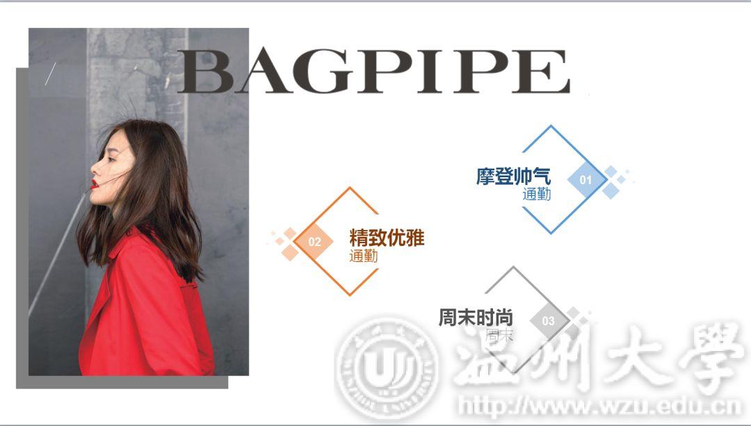 10日19日上午,Bagpipe风笛2019无限想象全国高校巡回宣讲会在美院顺利展开。在多年的合作与交流当中,风笛与温大也结下了不解的情缘。本次宣讲会有学院党总支副书记杨振海与风笛服饰有限公司经理吴朝晓莅临宣讲会现场。