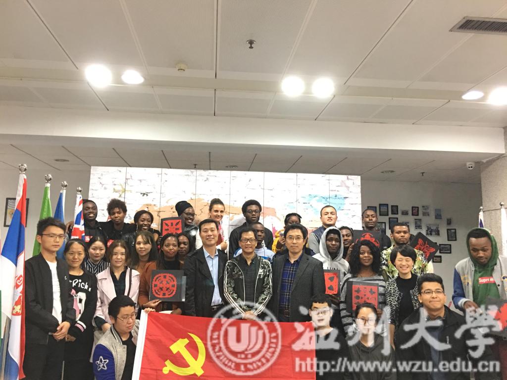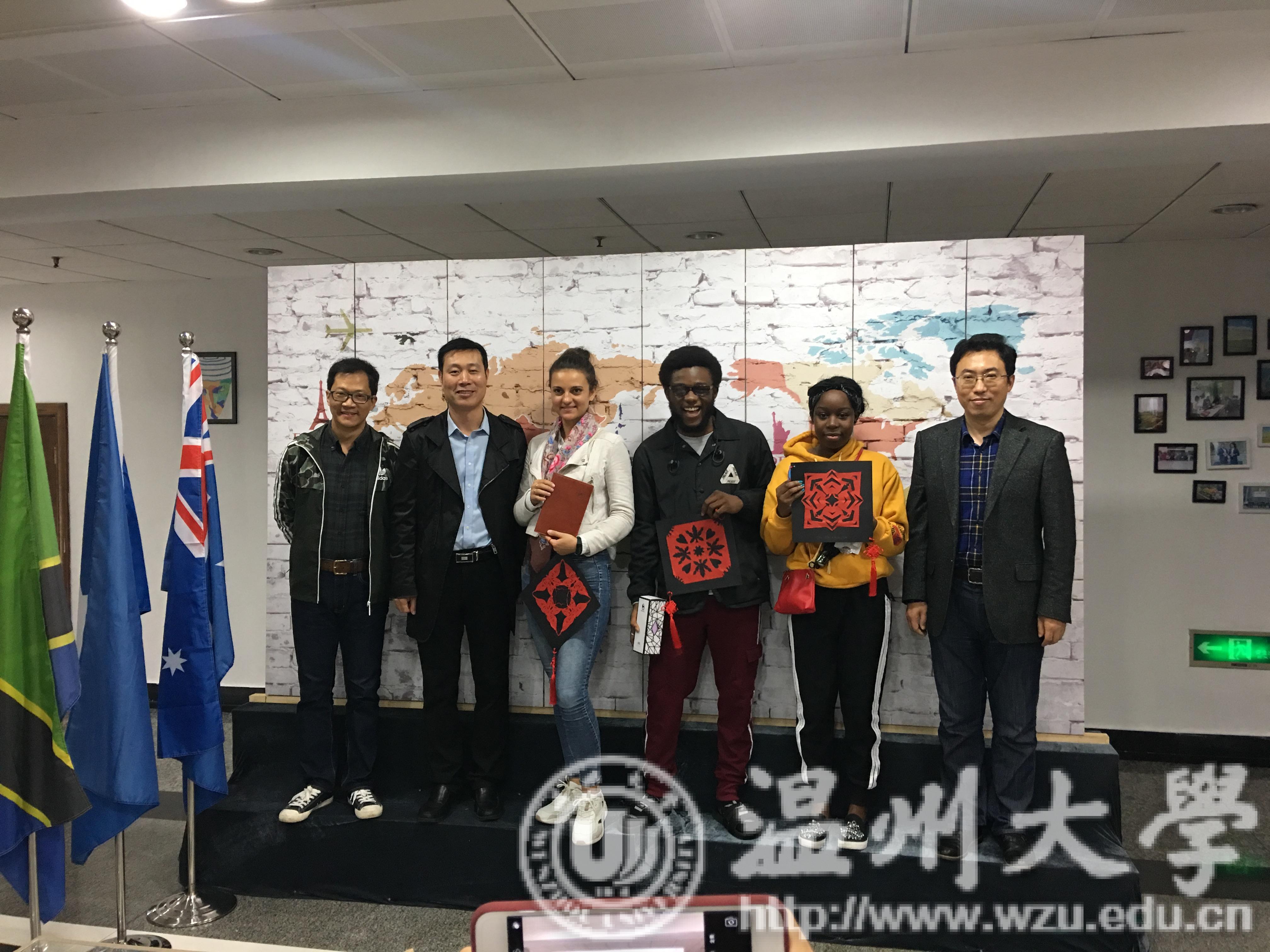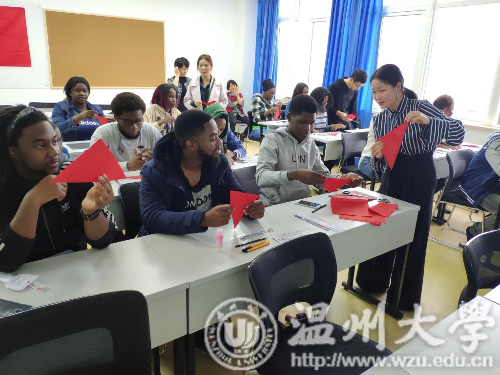 为了传承并发扬中国传统文化,丰富留学生校园文化生活,2018年10月22日下午,皇冠博彩-博彩导航 结合自身特色,与温州大学商学院合作,一同在北校国际楼开展了以中外剪纸文化交流为主题的活动。出席本次活动的领导有皇冠博彩 党总支副书记杨振海、商学院党总支副书记刘开练、商学院国际部主任王洪斌以及商学院教师吴海蓉。